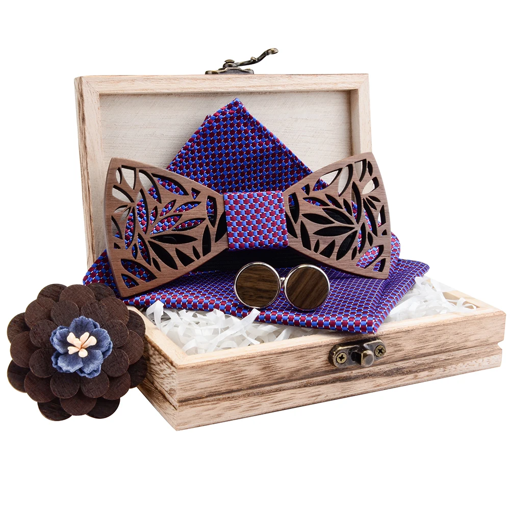 Модный деревянный галстук-бабочка Пейсли Карманный Squre набор мужская клетчатая галстук-бабочка полый резной цветочный дизайн и деревянная коробка галстук