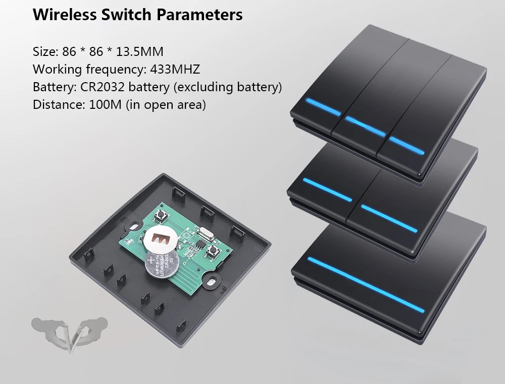 Размер: 86*86*13,5 мм Рабочая частота: 433 МГц Батарея: батарея CR2032 (без аккумулятора) Расстояние: 100 м (в открытой местности)