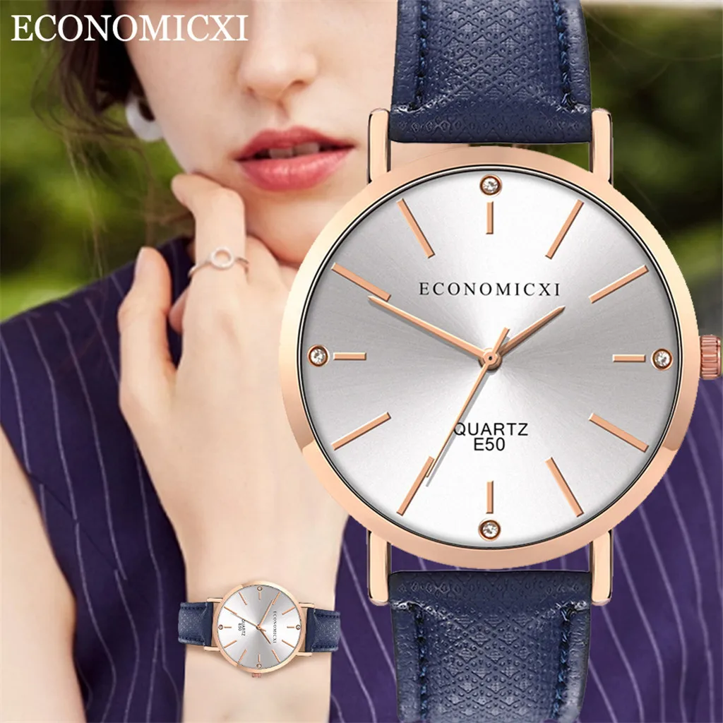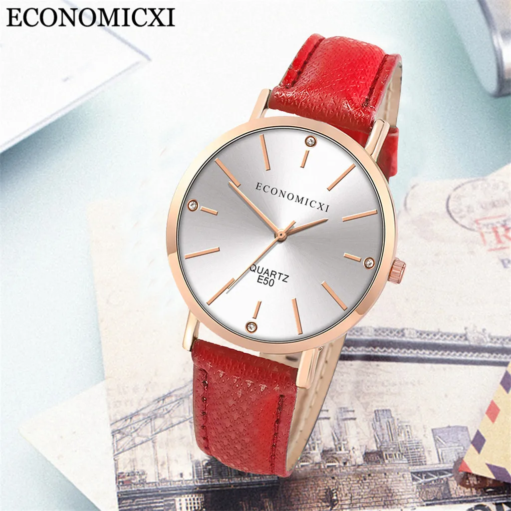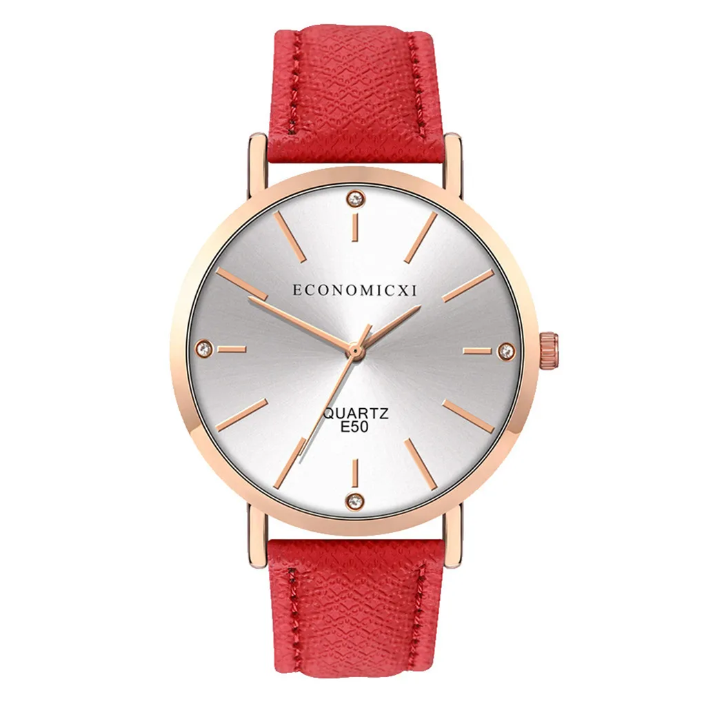 Модные женские часы с кожаным ремешком, кварцевые аналоговые круглые наручные часы