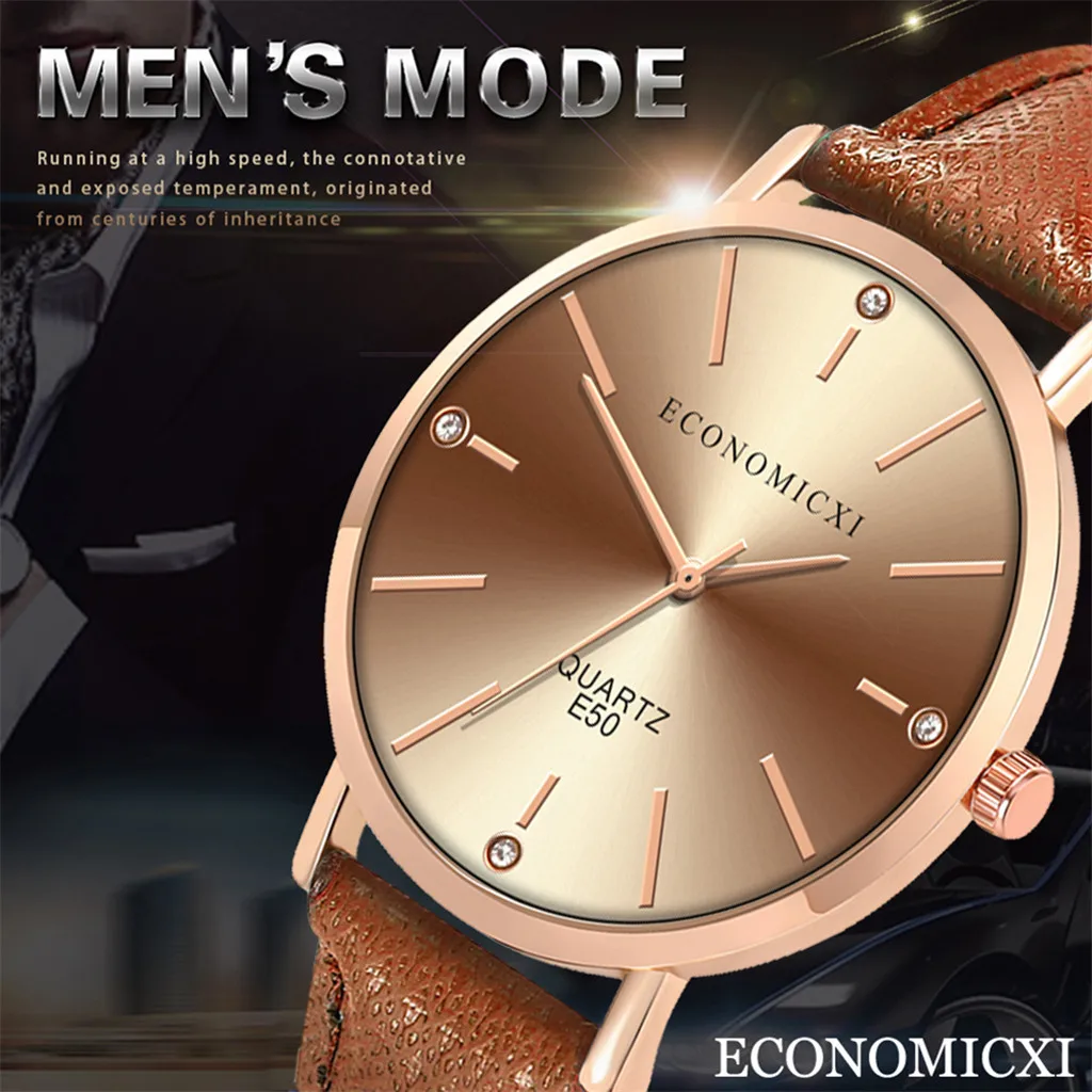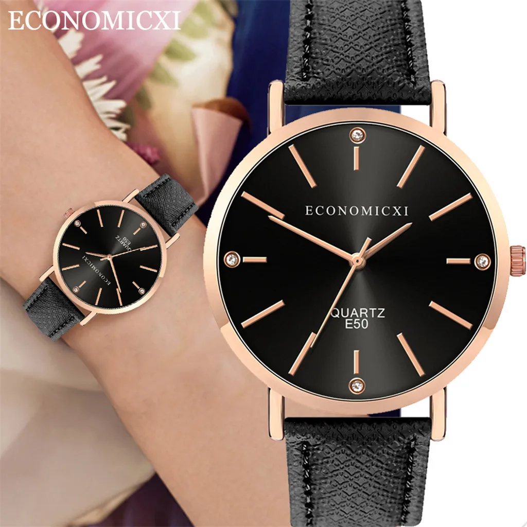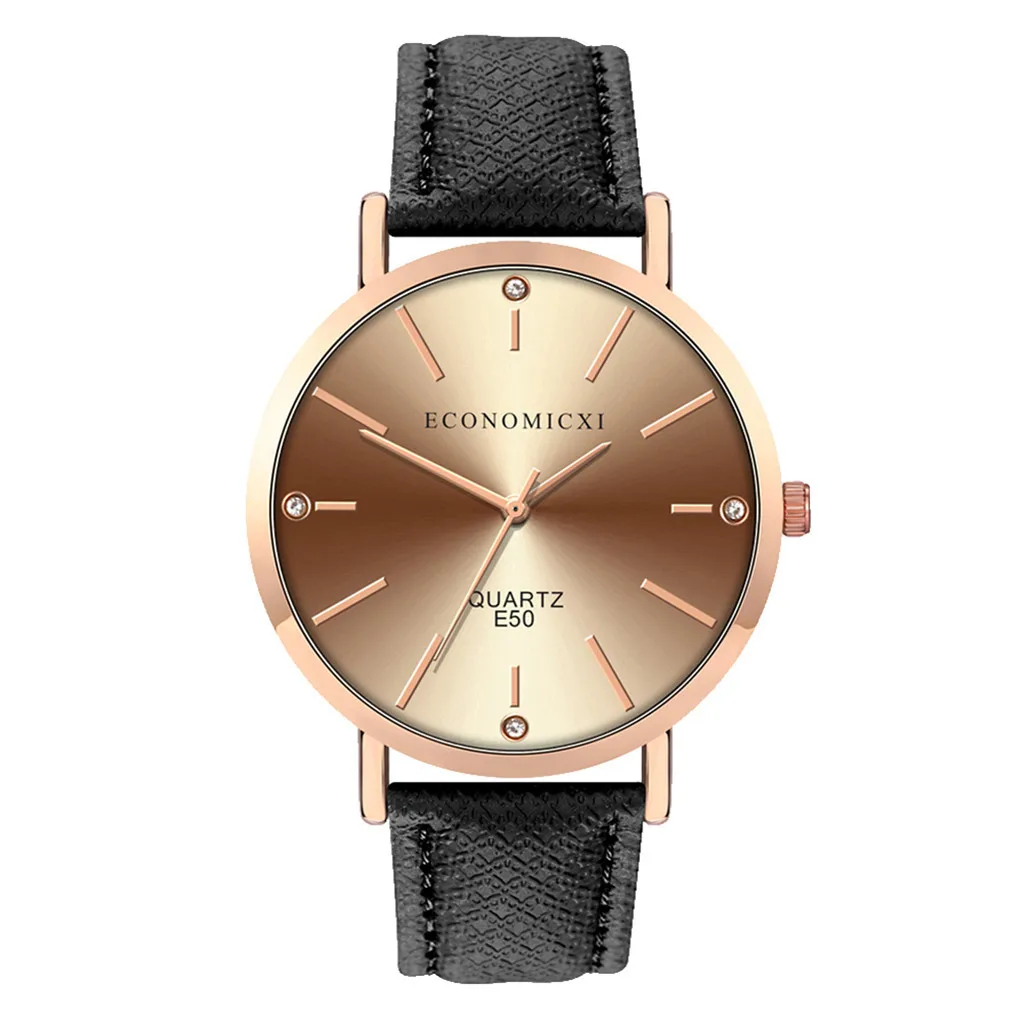Модные женские часы с кожаным ремешком, кварцевые аналоговые круглые наручные часы