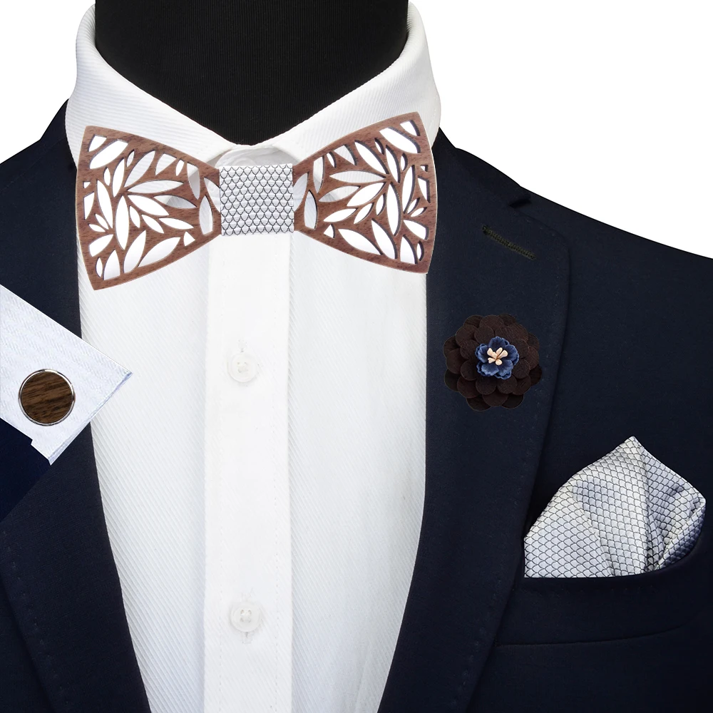 Регулируемый мужской Пейсли полый резной деревянный бабочка Карманный платок Цветочная Брошь запонки с деревянной коробкой галстук-бабочка костюм для свадьбы