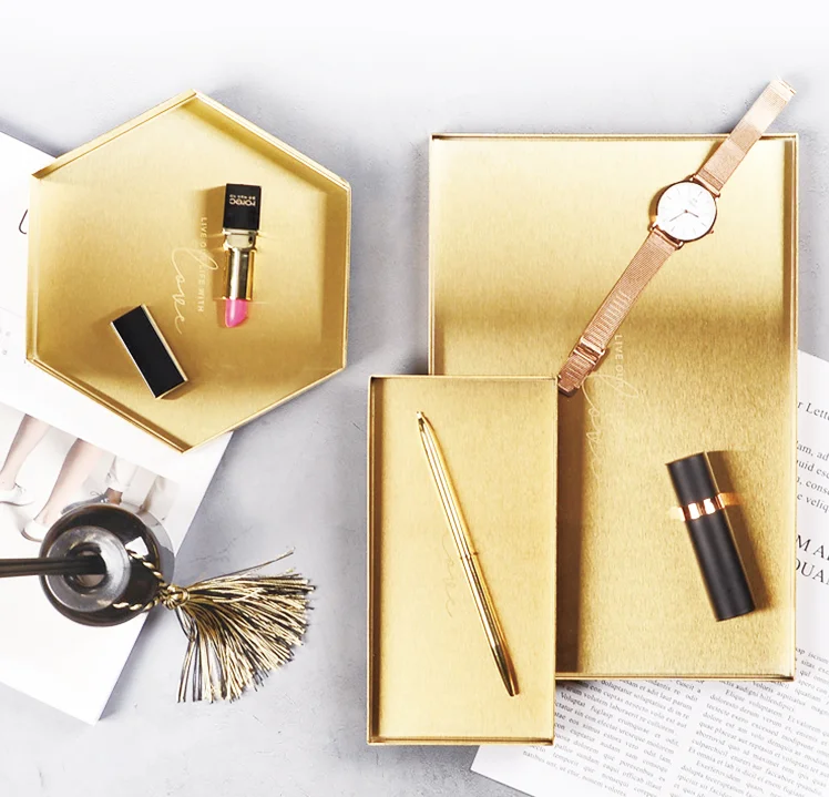 Скандинавский стол для хранения тарелок парфюм розовое золото металлический косметический Органайзер поднос минималистичный скандинавский лоток для ювелирных изделий