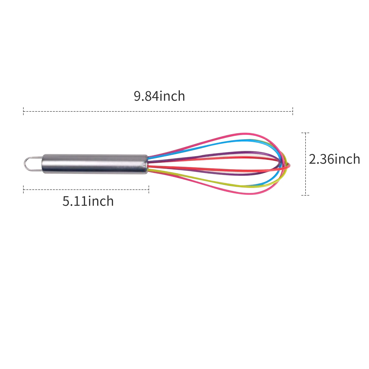 Венчик для взбивания яиц изготовлен из пищевого силикона и нержавеющей стали, прочный, никогда не беспокойтесь о сгибании или поломке для повседневного использования. Легко чистить, просто чистить в мыльной воде, промыть и высушить. Отличный инструмент для кухни. Смешивать, взбивать, взбивать и перемешивать будет очень легко. Всем в вашей семье понравится этот удобный инструмент, особенно для детей.
