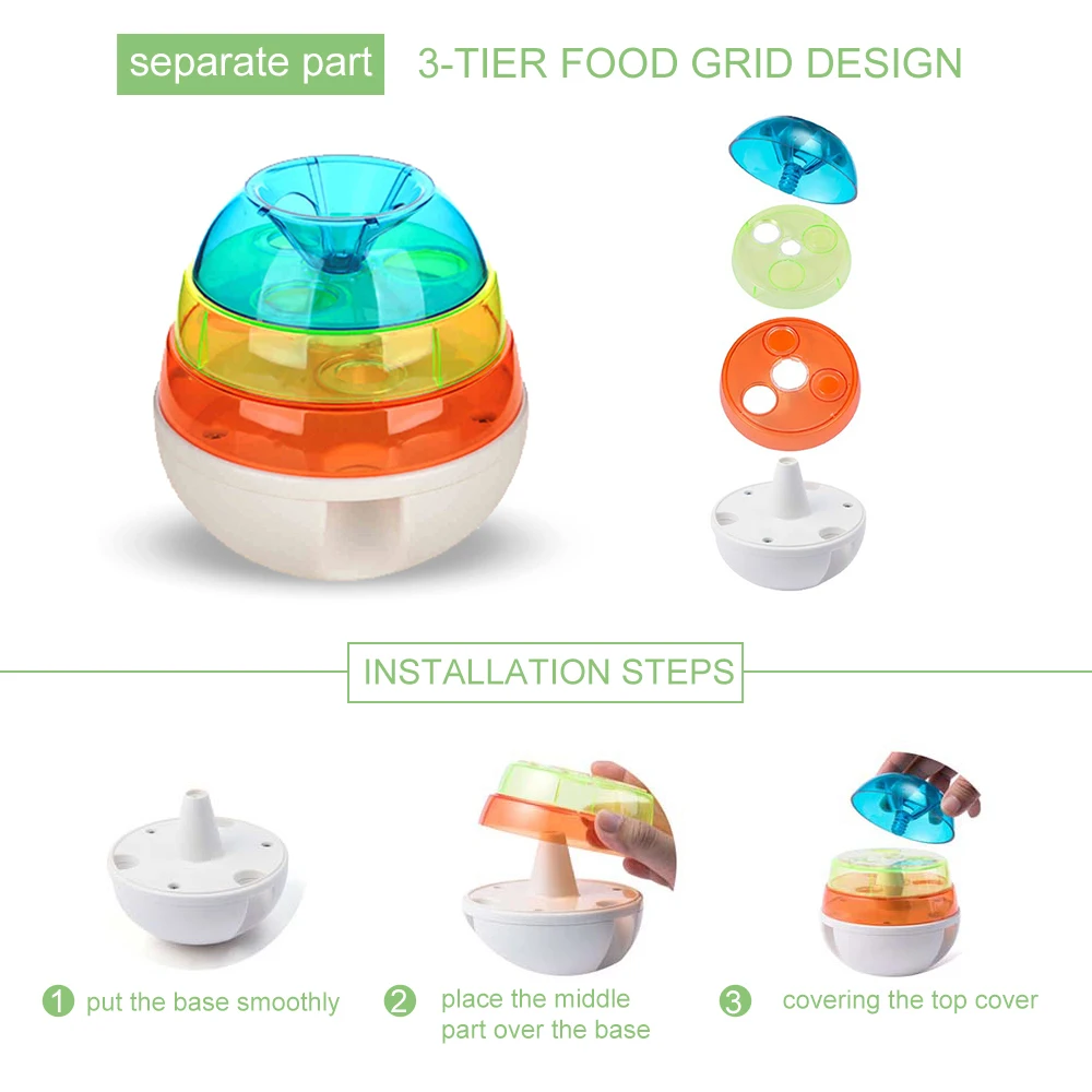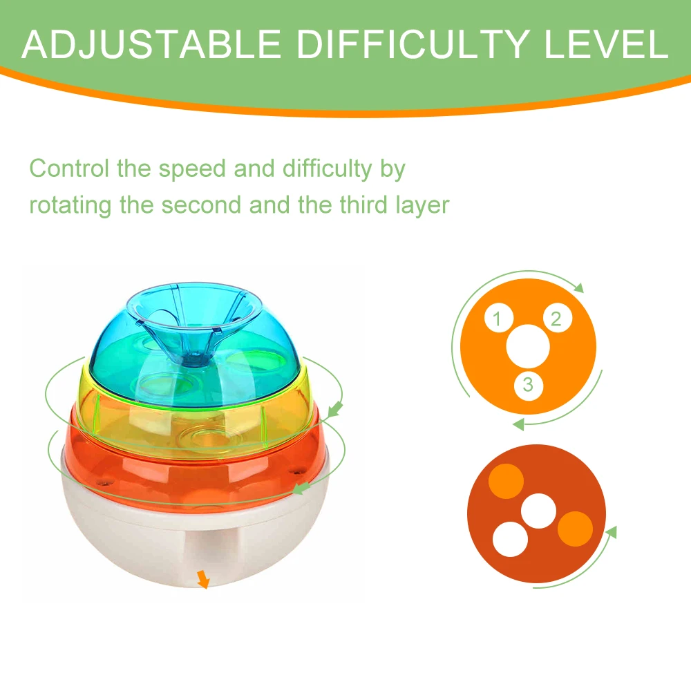 3-уровневая Конструкция Пищевой сетки:Отдельные части, которые позволяют игрушке обрабатывать различные размеры и типы рисков, контролируют скорость и сложность, поворачивая второй и третий слой, чтобы развивать и поддерживать физическую бдительность ваших питомцев.