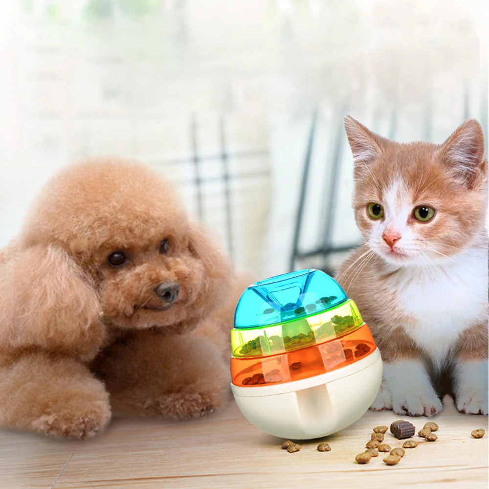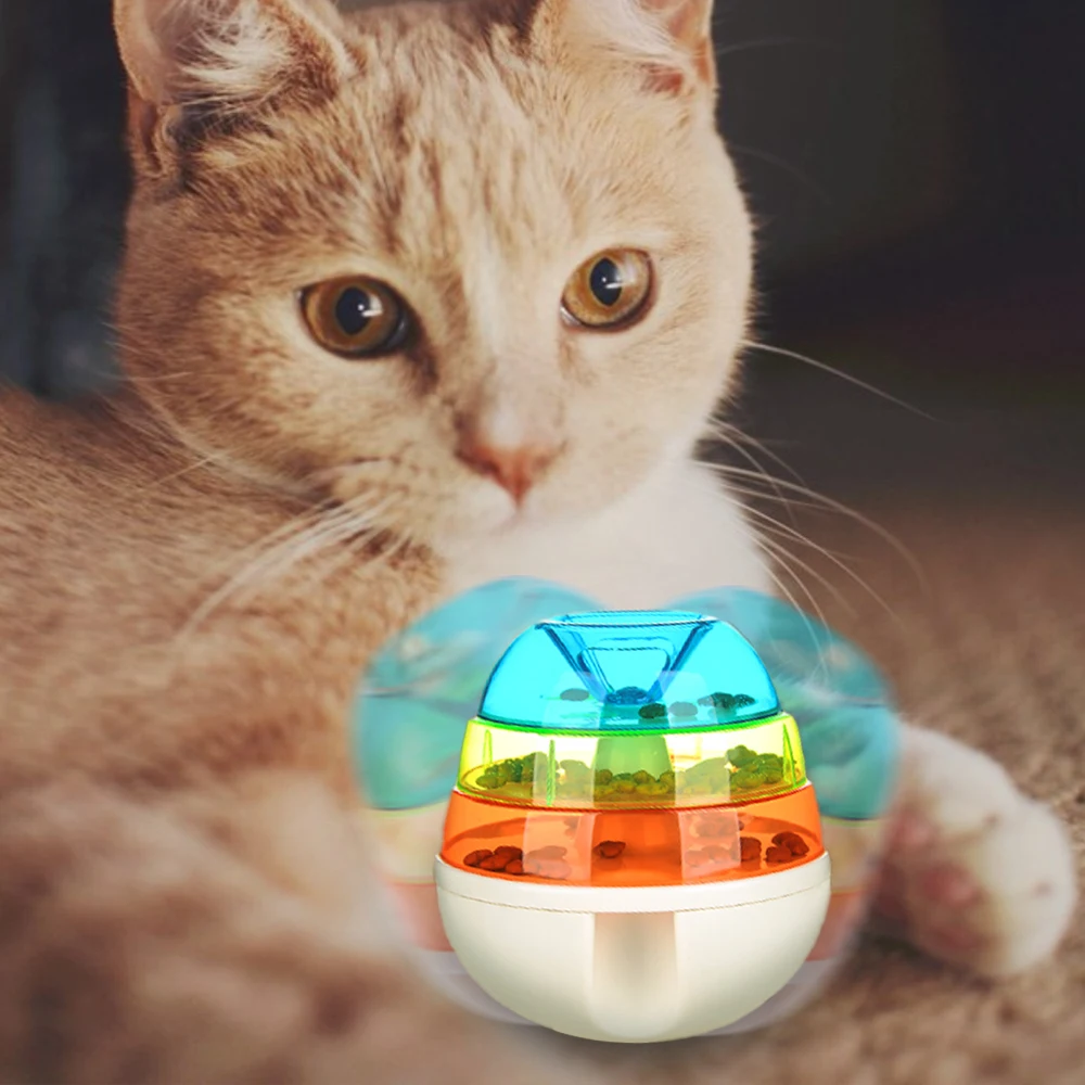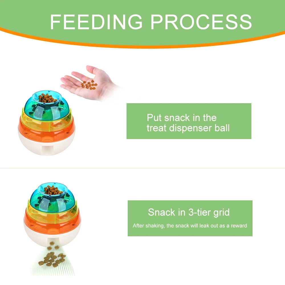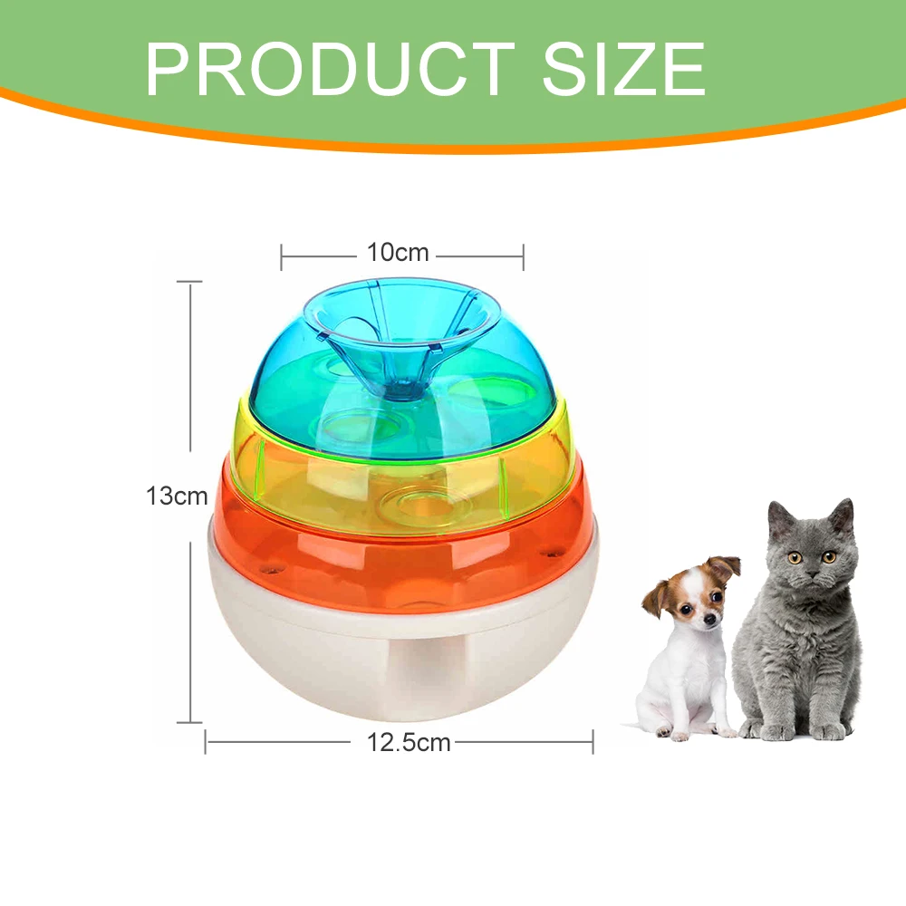 Игрушка для дозирования еды:Этот красочный шар IQ treat позволит вашей собаке видеть, пахнуть, слышать и находить свою любимую еду внутри. Когда ваша кошка устает, вы можете положить в нее немного еды. Когда вращение движется и кошка выталкивает мяч неожиданно или непрерывно, закуска вытекнет из отверстия в качестве награды вашей кошке.
