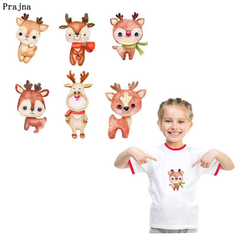 Prajna милые наклейки с маленькими оленями, нашивки, утюжок на переноске для детей, футболки, толстовки, аппликация, глажка, термопередача, сделай сам Минимальный заказ: 1 шт. Размер: как показано на картинке