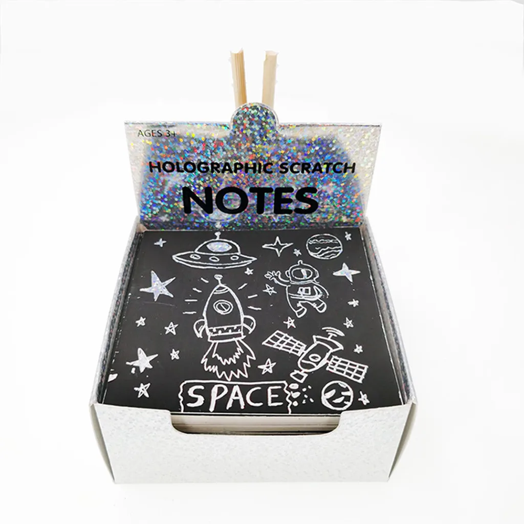 Царапины Набор нот с рисунком царапин с 100 голографической радужной бумагой, 2 стилуса, 2 Трафареты царапины Волшебные Примечания