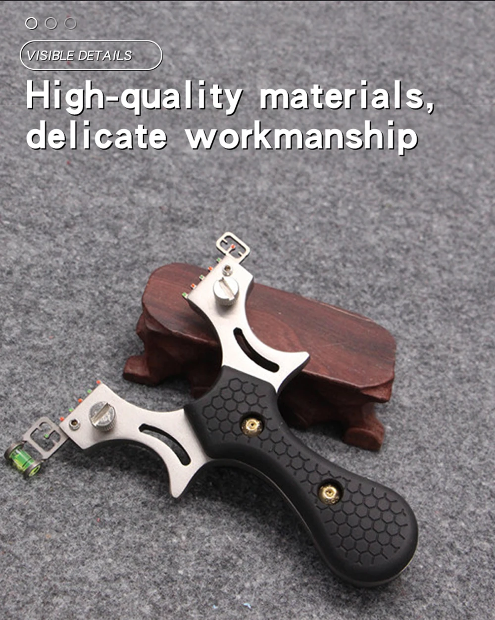 Преимущества продукта 1. Головка отмечена четко видимой лазерной шкалой для повышения точности удара 2. Ручка рогатки обернута резиной, которая более удобна в использовании и не устает в течение длительного времени 3. Перекрестное зрение, четкое зрение, зрение может быть изменено влево и вправо, движение 4. Конструкция пружинного прессования облегчает и ускоряет установку резинок Особенности: Совершенно новый, высокое качество Отлично подходит для отдыха на свежем воздухе. Стреляйте камнями, мраморными шариками, кисточками и т. д. Специальный целевой дизайн, точная Рогатка Маленький размер, светильник вес, легко носить с собой Улучшите точность стрельбы. Включая нескользящую гравировку Прочное использование Высота рогатки: 125 мм Наружная ширина рогатки: 87 мм Внутренняя ширина рогатки: 42 мм Вес рогатки: около 250 г Рогатка Материал: нержавеющая сталь с резиной Внимание: не стреляйте в людей Много типов для вас на выбор: Тип 1: 1 * Рогатка + 1 * Резиновая лента Тип 2: 1 Рогатка + 3 резинки + 100 г буровых гранул Тип 3: 1 Рогатка + 3 резинки + 100 г стальные шарики Тип 4: 1 Рогатка + 3 резинки + 100 г стальные шарики + 1 * сильное магнитное кольцо + 1 * Рогатка сумка Тип 5: 1 Рогатка + 3 резинки + 100 г буровых гранул + 1 * сумка с рогаткой + 1 * ремешок на запястье (Левая или правая)