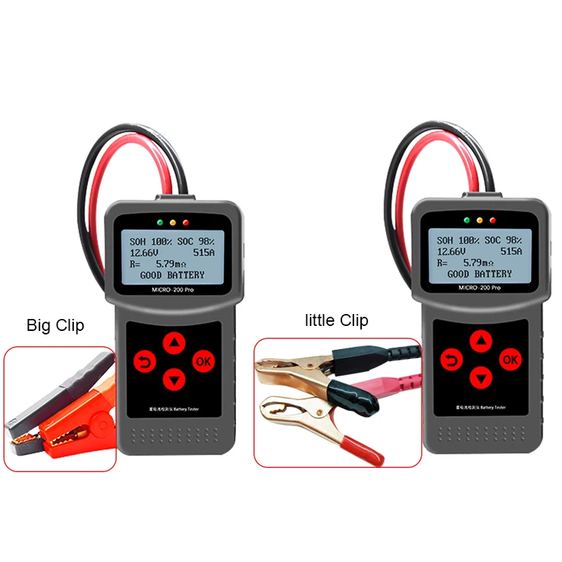 Есть два типы зажимов. Большой и маленький зажим. Большой зажим наиболее подходит для автомобиля. Небольшой зажим наиболее подходит для мотоцикла. (функция одинаковая. Оба могут протестировать автомобиль и мотоцикл)