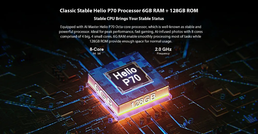 ЦП:MT6771T Octa Core Cortex A73, 2,1 ГГц
