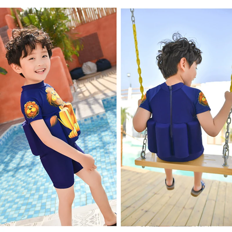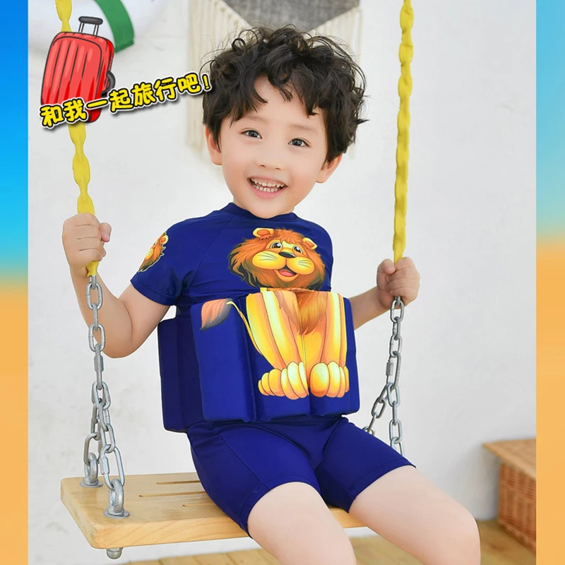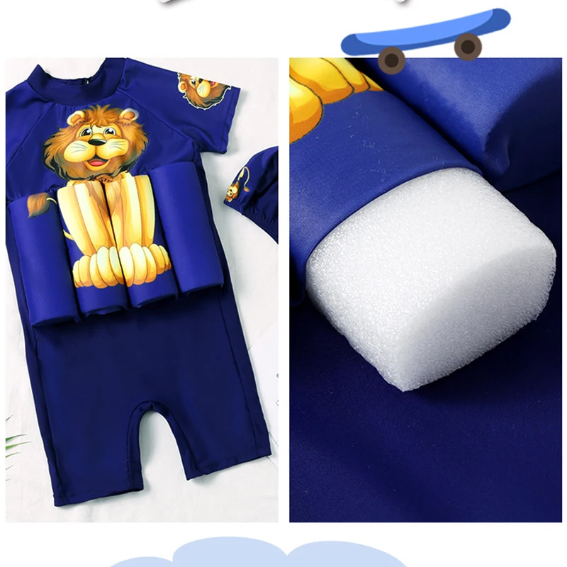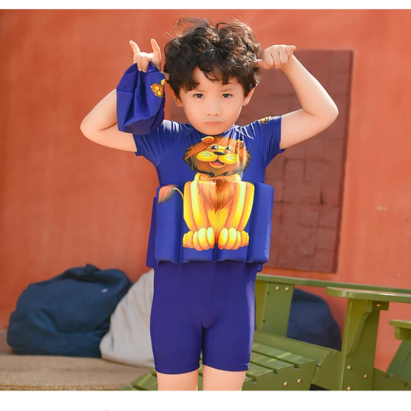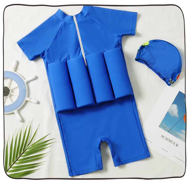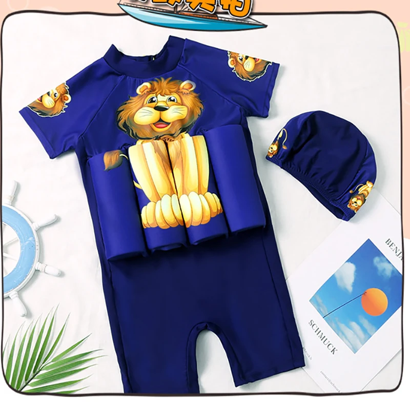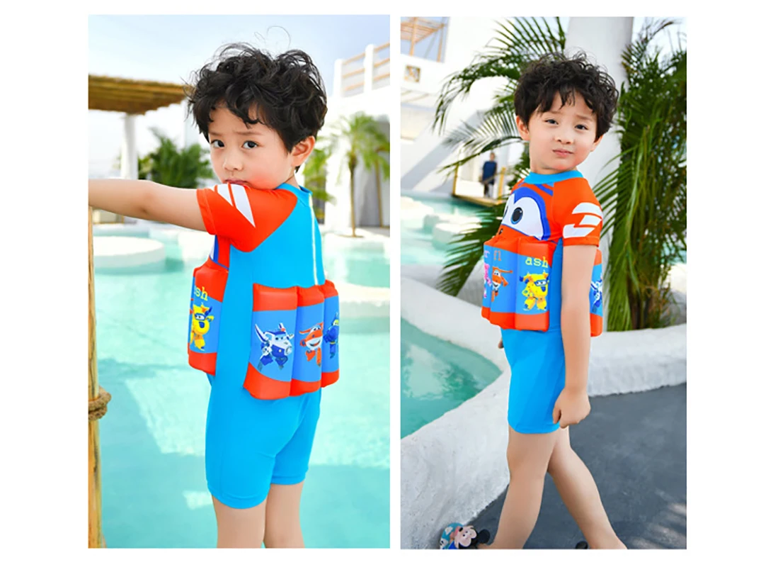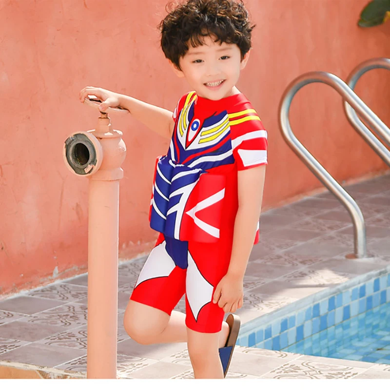 Детский купальный костюм для мальчиков с Суперменом, цельный купальный костюм плавучести, шапочка, шорты с рукавами, купальный костюм для обучения плаванию