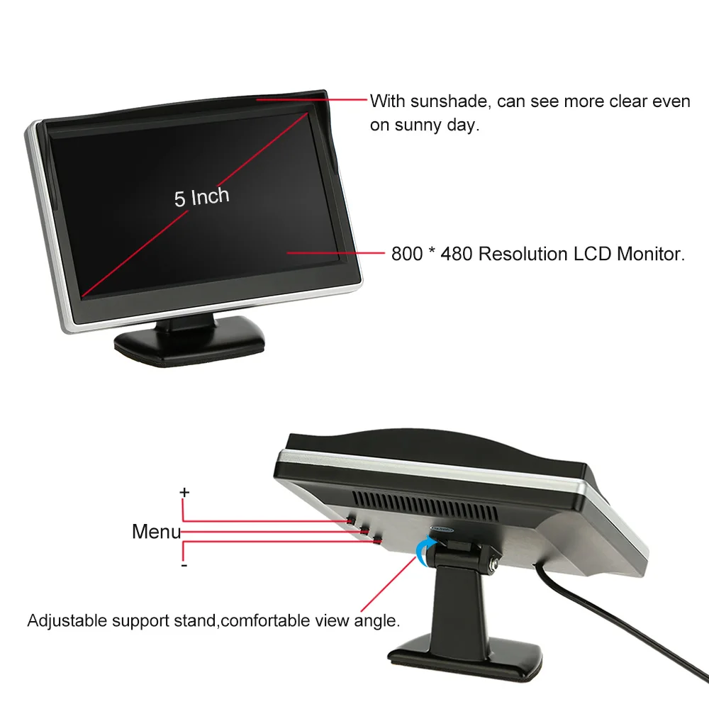 5-дюймовый TFT ЖК-дисплей монитор заднего вида автомобиля резервная система заднего вида + HD парковочная камера