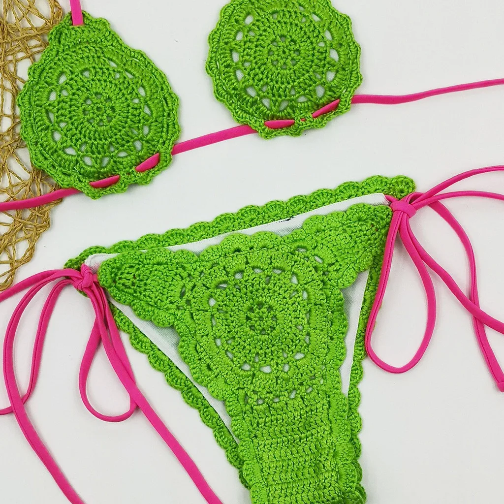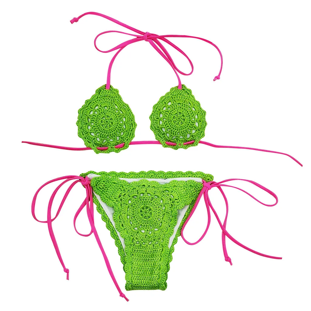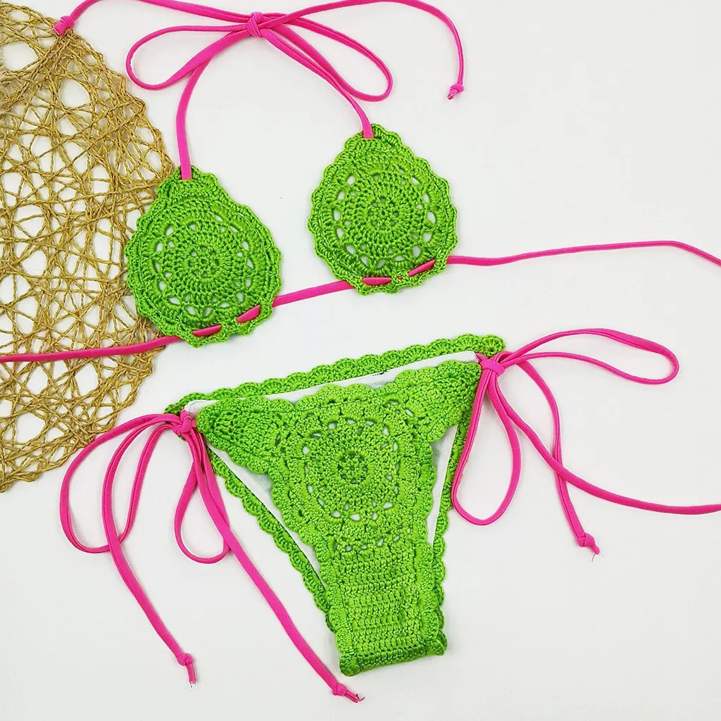 Женский сексуальный вязаный бикини раздельный костюм бикини купальник пляжная одежда купальник набор