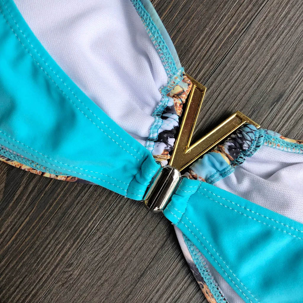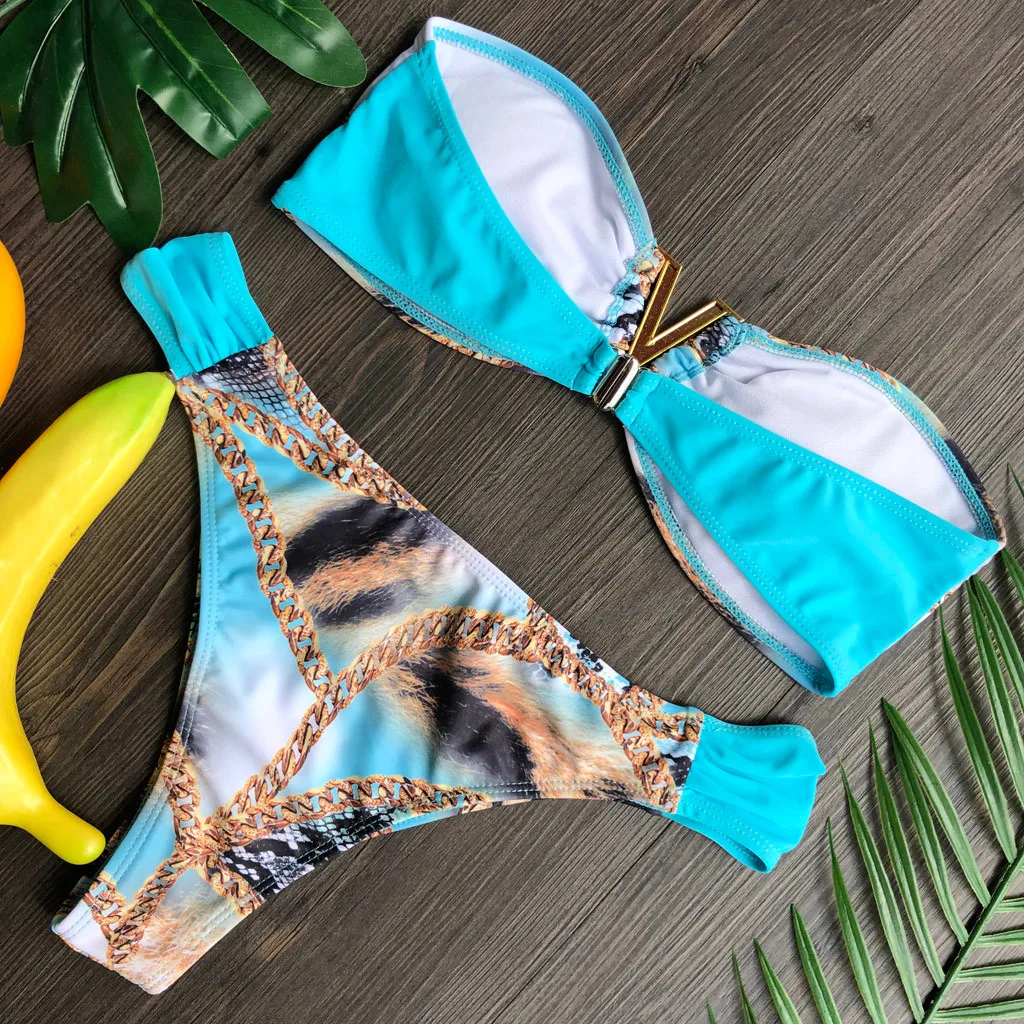 Женский сексуальный комплект бикини с принтом, женский купальник-бандо с высоким вырезом