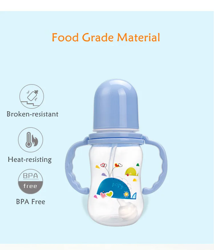 Спецификация: 1. Состояние на 100% абсолютно новый и высокое качество 2. Материал: ПП и силикон 3. Размер бутылки: 14 см x 11 см 4. Упаковка: оригинальная коробка Характеристика: 1. Бутылочка для кормления изготовлена из пищевого материала, который безопасен и не содержит бисфенола. Он устойчив к повреждениям и жару. Он может быть пастеризован и не деформируется. 2. Бутылочка для кормления может соответствовать различным позициям ребенка и не протекает при переворачивании. Ручки могут вращаться на 360 °. Примечание: * Есть 4 цвета-фиолетовый/синий/розовый/зеленый. Розовые и фиолетовые для девочек, синие и зеленые для мальчиков. Вы можете выбрать цвет для мальчиков или девочек. И каждый 2 цвета для мальчиков/девочек доставляются случайным образом.