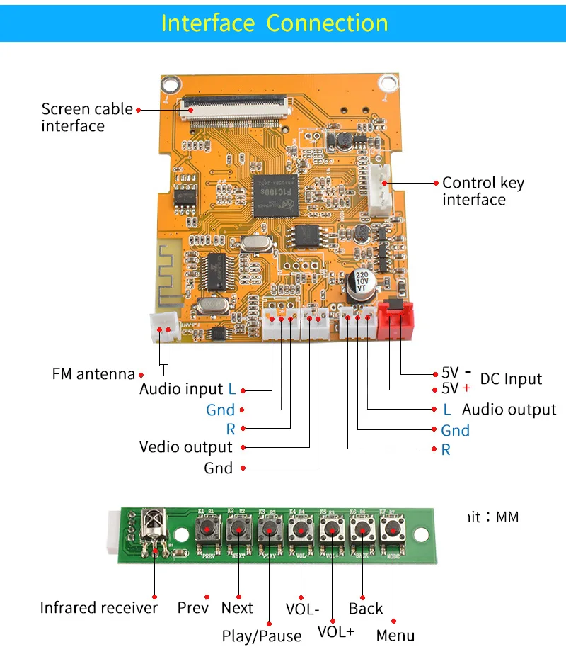 Название товара: плата видеодекодера Рабочее напряжение: DC9-12V Поддержка SD или USB считывания: 128G TF-карта Поддержка fm-радио: 87 ~ 108 м Поддержка функции приема Bluetooth: версия 4,2 Bluetooth Поддержка формата воспроизведения видео: RM/RMVB MKV AVI MPG FLV WMV MP4/M4V MOV VOB PMP (RM, RMVB, DVD, SVCD, VCD, DVCD, DVIX, FLV, MKV, AVI и других стандартных форматов) Поддержка формата воспроизведения аудио: MP3 WMA OGG FLAC APE AAC AC3 ATRA DTS Поддержка формата просмотра картин: JPEG BMP GIF Формат просмотра электронной книги: TXT LR c Настройки языка: китайский и английский Поддержка разрешения HD видео (1280*720) Поддержка работы с инфракрасным пультом дистанционного управления В комплект входит: 1 шт * 4,3 дюймовый экран 1 шт. * Плата декодера 1 шт. * плата управления 1 шт. * пульт дистанционного управления 1 шт. * набор кабелей