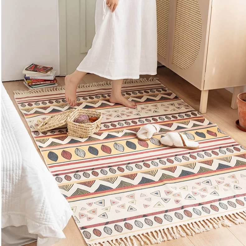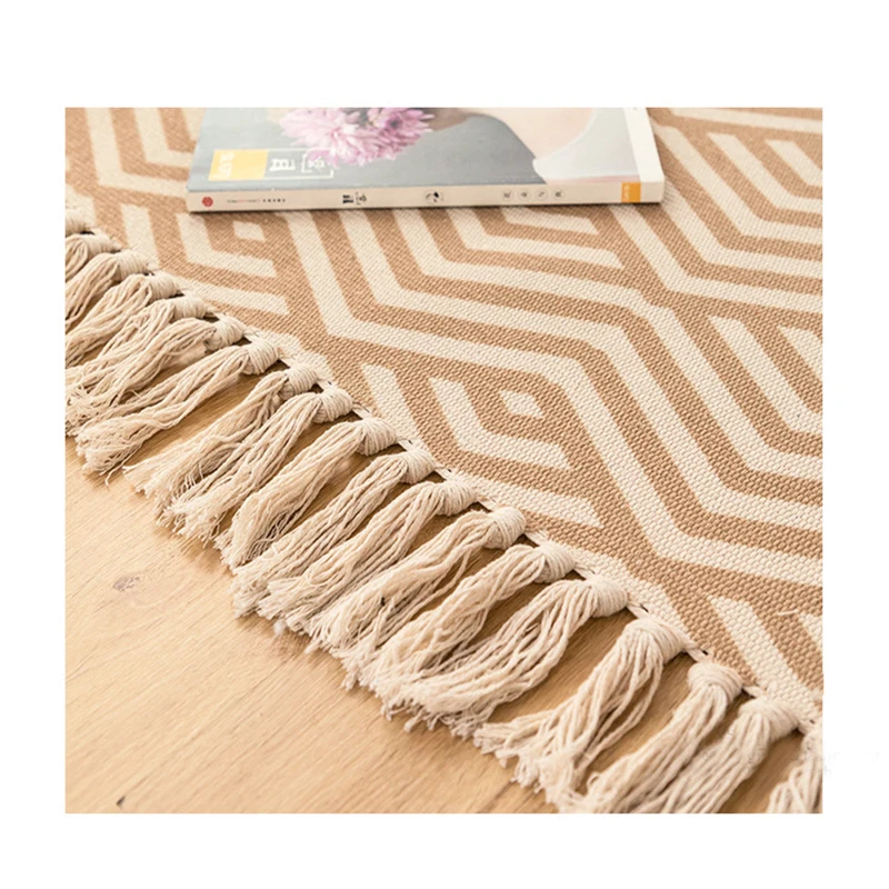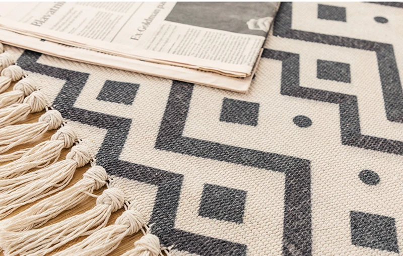 Характеристики: Материал: хлопок и лен Большой размер: около 115x170 см (длина кисточки не включена) Маленький Размер: около 60x90 см (длина кисточки не включена) Ковер может иметь морщины, потому что продается в сложенном виде, но морщины исчезнут после использования. Посылка входит: 1x ковер Совет: ручное измерение будет иметь погрешность 2-5 см, является нормальным диапазоном.