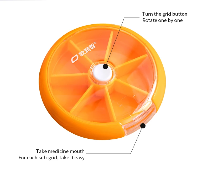 7 отсеков для Еженедельные таблетки, доступа к нажимной кнопке выхода до отсеков