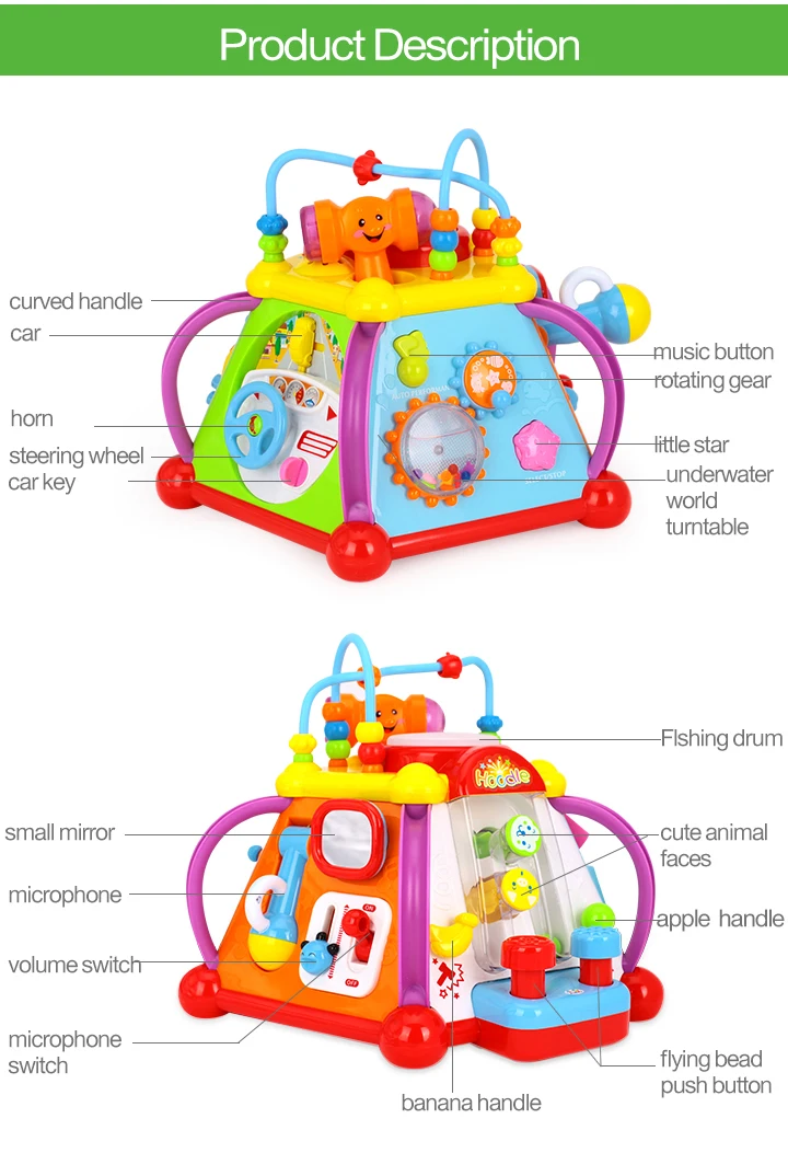 Параметры: ❤Бесконечное удовольствие: С шестью сторонами и 15 различными видами деятельности, WolVol музыкальная активность кубик будет держать маленьких занимается в течение нескольких часов на конце. Везде, где ребенок поворачивается, есть что-то веселое и новое, чтобы узнать. Веселье никогда не кончается! ❤Музыкальных развлечений: Поверните шестеренки, нажмите на музыкальную ноту или кнопку звезды или позвоните колокольчику в ее сладкие мелодии. Хотите сделать свою собственную музыку? Есть встроенный микрофон, так что маленькие могут издавать свой собственный шум! ❤Несколько квалификация: Каждый объект имеет различные функции, которые требуют различных умений-вождения, разговора, пения, использования инструментов и многого другого. В сочетании с огнями, музыкой и звуковыми эффектами Этот куб для деятельности имеет все, что ребенок только мог себе представить. ❤Учебное пособие: Развивая творческие способности и веселье, WolVol Musical Activity Cube помогает детям улучшить координацию глаз и рук, улучшая их мелкую моторику, критическое мышление и навыки решения проблем в то же время. ❤Станет желанным подарком для друзей и близких: Эта развивающая игрушка с великолепными привлекательными цветами станет идеальным выбором для мальчиков и девочек от 18 месяцев. Таким образом, он станет отличным подарком для праздников, дней рождения и других особых случаев.