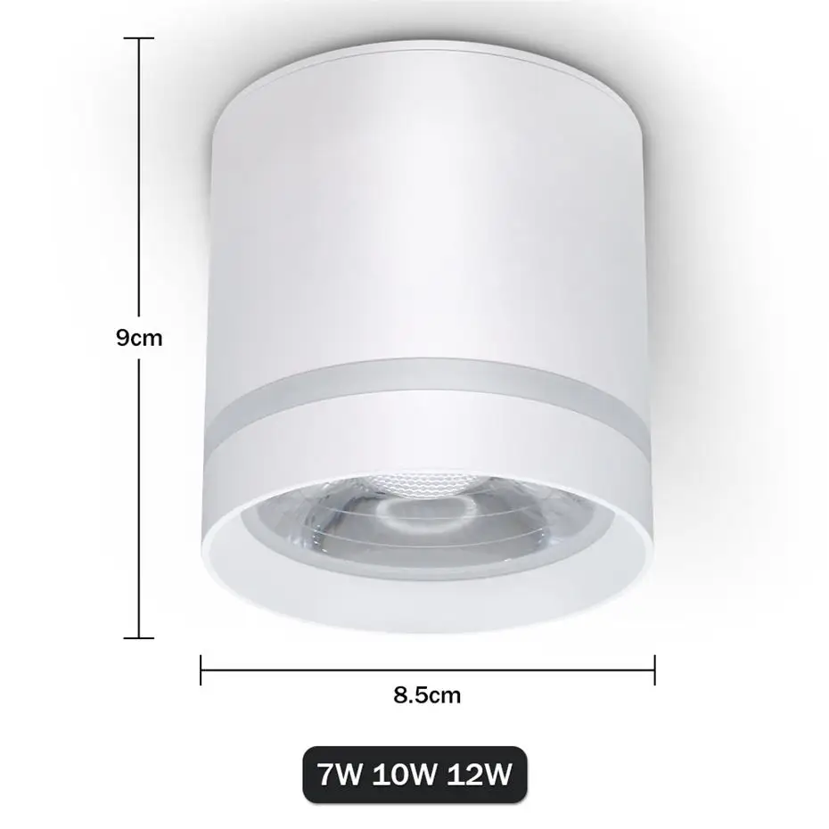 Входное напряжение: AC85-265V Материал корпуса: высококачественный алюминий Продолжительной работы. Цвет корпуса: черный/белый/зеленый/синий/серый/розовый/желтый Мощность: 7 Вт 10 Вт 12 Вт Светодиодный источник света: чип COB Люмены (лм): 100-110 лм/Вт Индекс цветопередачи: Ra >80 Цвет света: холодный белый (6000-6500K) Теплый белый (3000-3500K) Натуральный белый (4000-4500K)