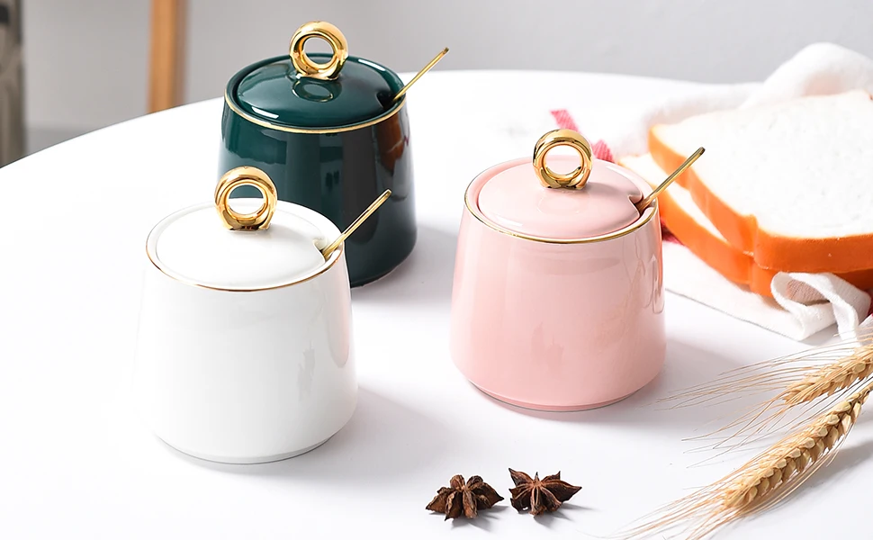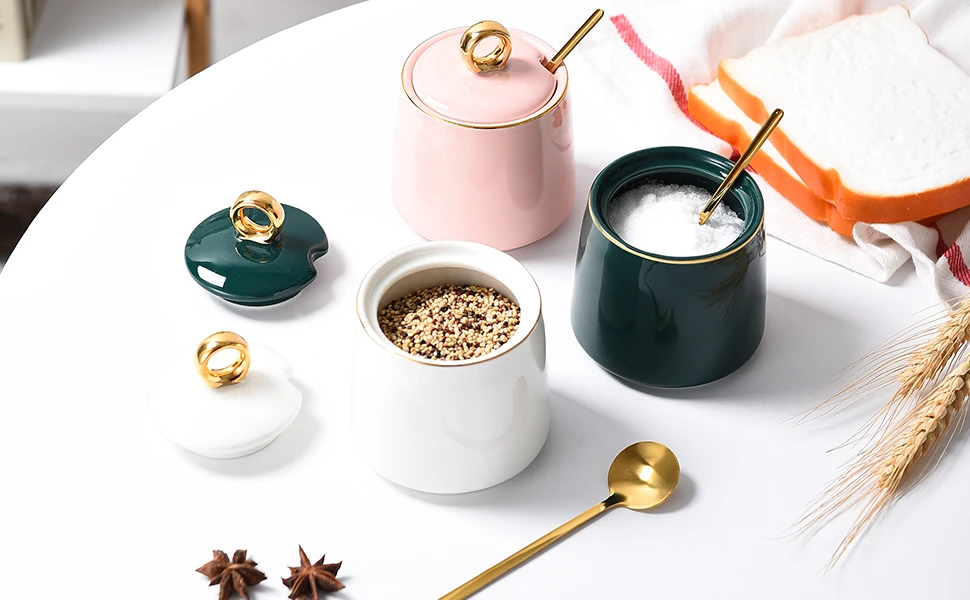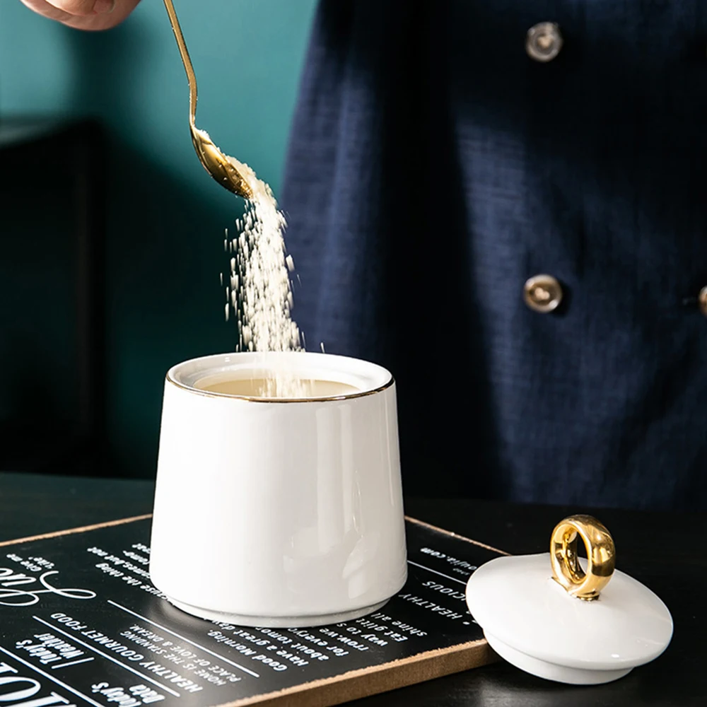 Диспенсер для сахарницы, контейнер для соли, Керамическая сахарница с крышкой и ложкой для дома и кухни