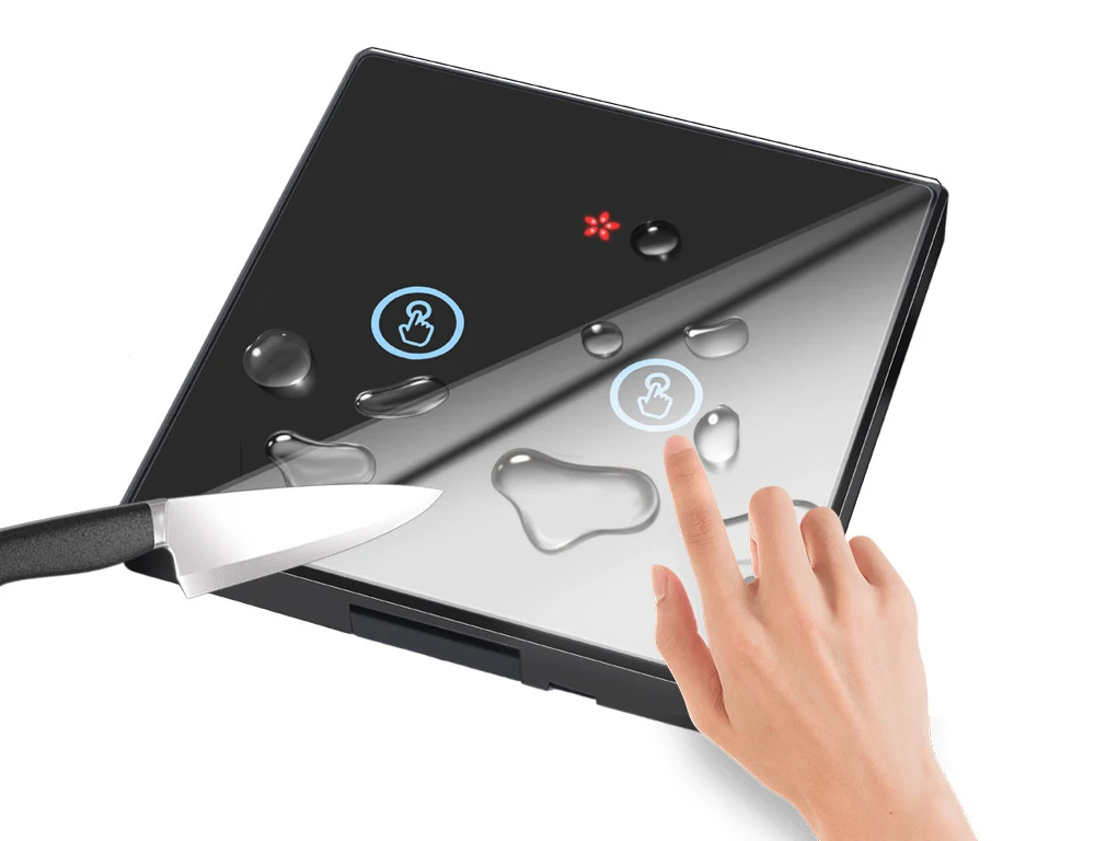 Очень чувствительный дизайн, может быть тронут влажными руками