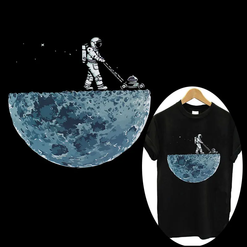 Moon And Astronaut Applique Heat Transfers Patches For Clothing Cartton Patch Space Iron On Patches On Clothes Tshirt Decro DIY