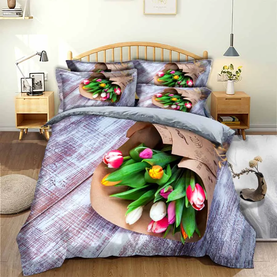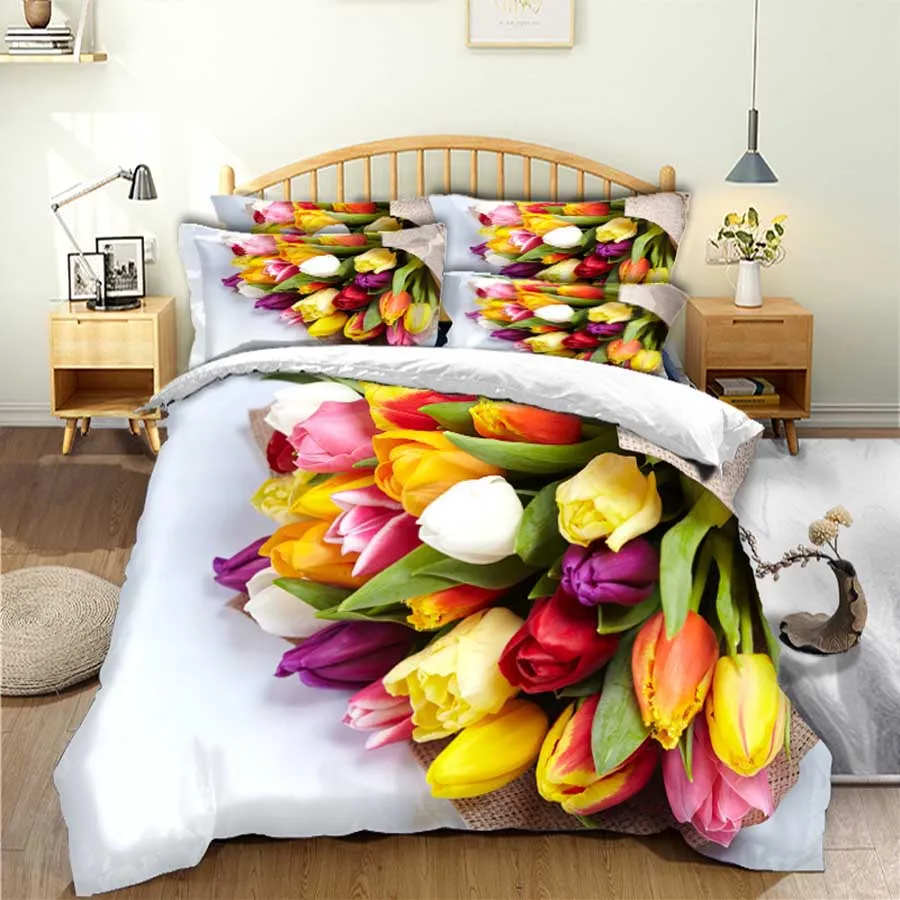 Wostar 2020 Новое поступление Комплект постельного белья королевского размера простыней пододеяльник и Подушка Чехол домашний текстиль 3d цифровая печать в форме тюльпана