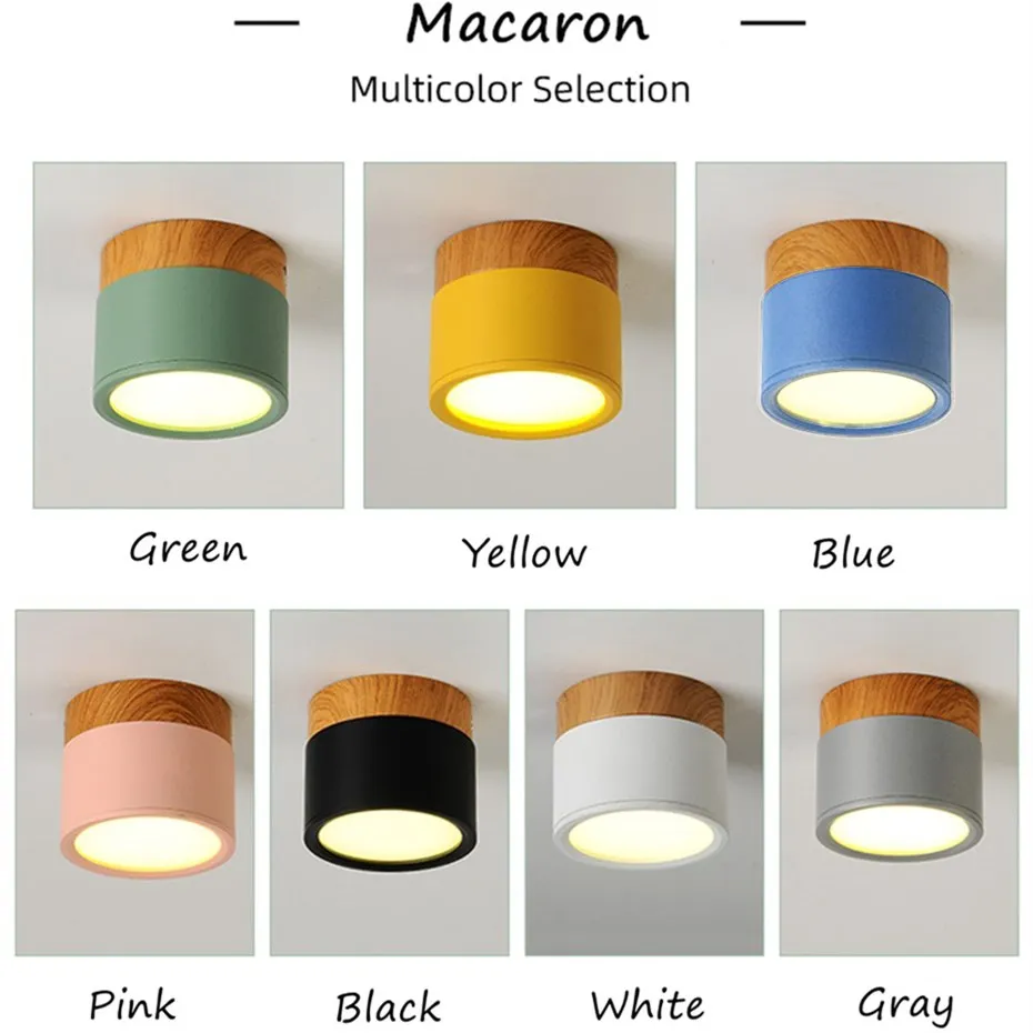 Macaron Colorful Surface Mounted Led Downlight 5W 12W Dimmable Ceiling Lamp White/Black/Blue/Green/Grey Indoor Spot Lighting