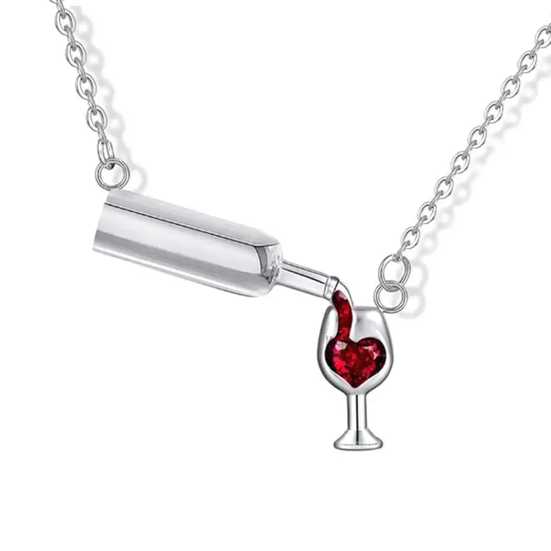 Название продукта: ожерелье из циркония в виде бутылки вина с сердечком