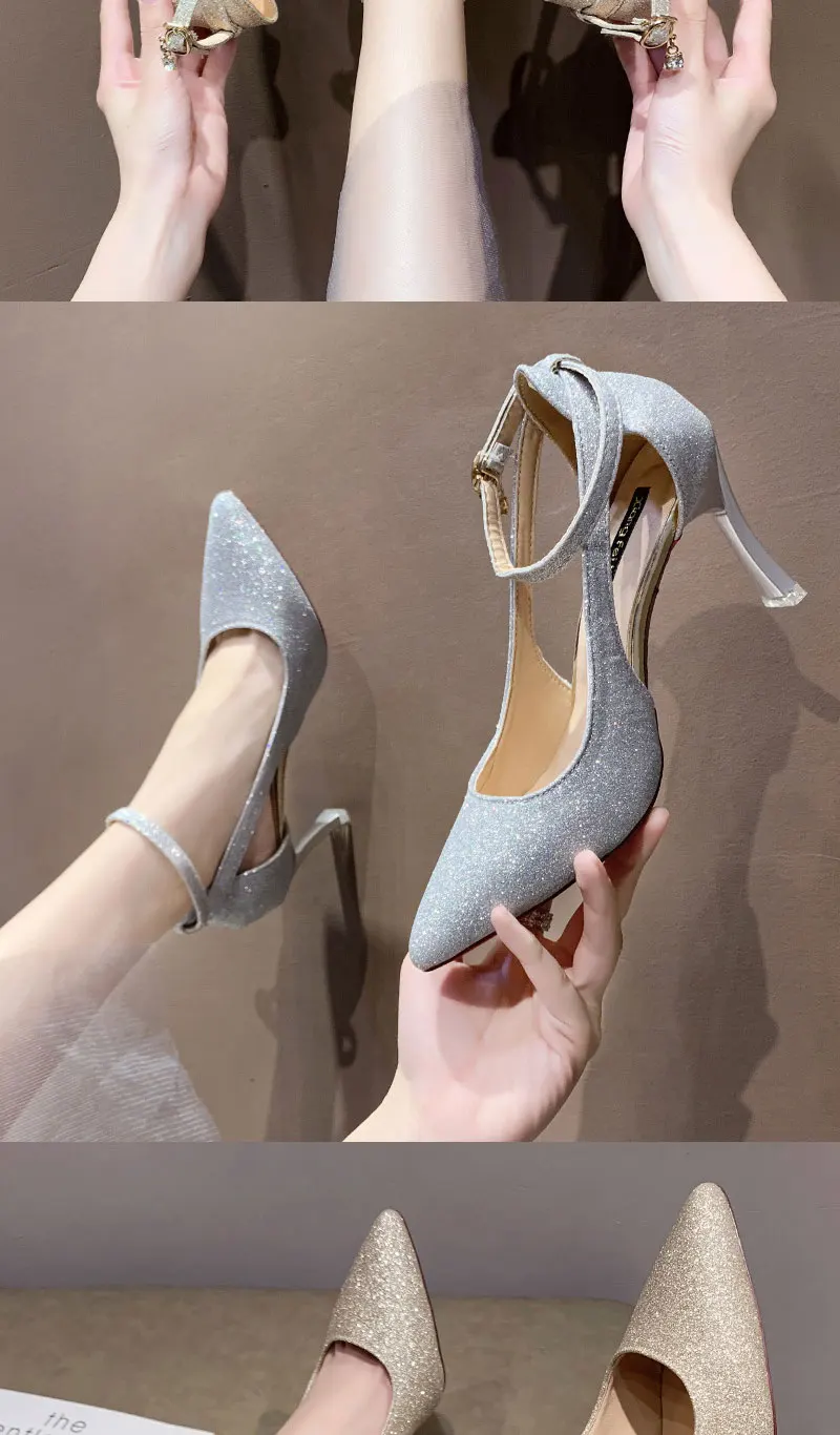 Категория товара: модные сандалии Подходящий возраст: для взрослых Материал верха: искусственная кожа Материал подошвы: Резина Стиль: профессиональный Форма Носка: острый Высота каблука: Высокий каблук (6-8 см) Форма каблука: шпилька Популярные элементы: закрытый носок, пряжка Как носить: Пряжка Функция: Увеличение, баланс Способ обработки: лакированная кожа Рисунок: однотонный Технология подошвы: обувь из вискозы Внутренний материал: кожа Высота верха: низкая Стиль задней части: с каблуком Боковая помощь: Боковая пустая Цвет: серебристый, золотой Размер: 35, 36, 37, 38, 39