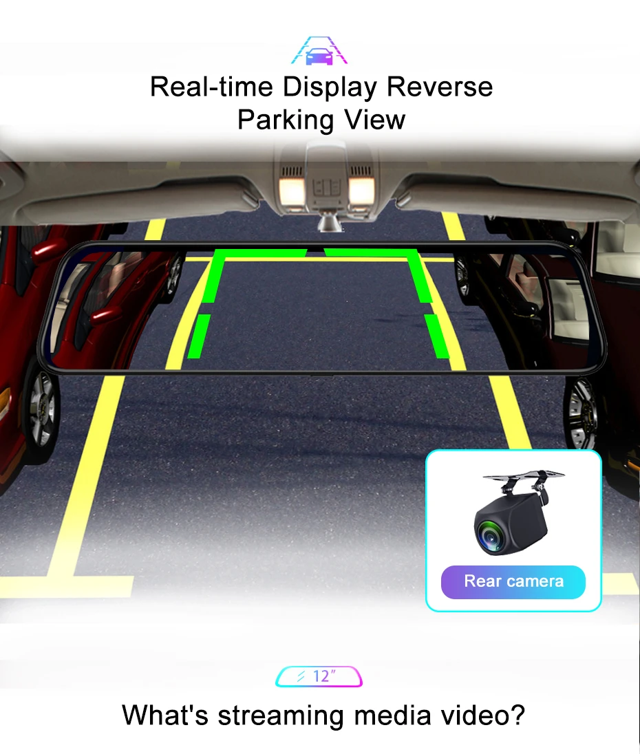 Традиционные зеркала заднего вида могут обеспечивать только ограниченное видение заднего вида. Большую часть времени, когда мы паркуем, нам нужно повернуть голову, чтобы увидеть слепую область позади транспортного средства. Камера для потокового прибора не только позволяет избежать препятствий на подголовник или задний столб, поле зрения в 3 раза больше, чем стандартное зеркало заднего вида. И даже ночью и под дождем, видимость отличная.
