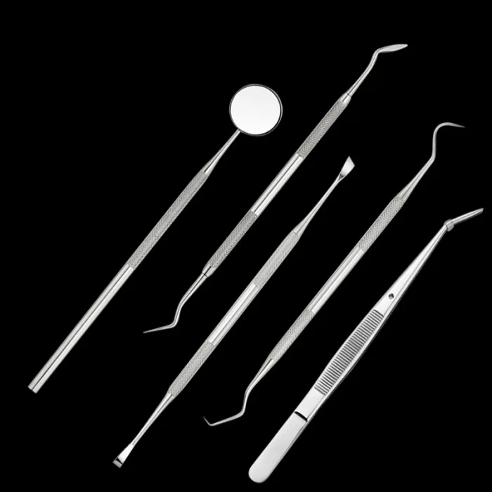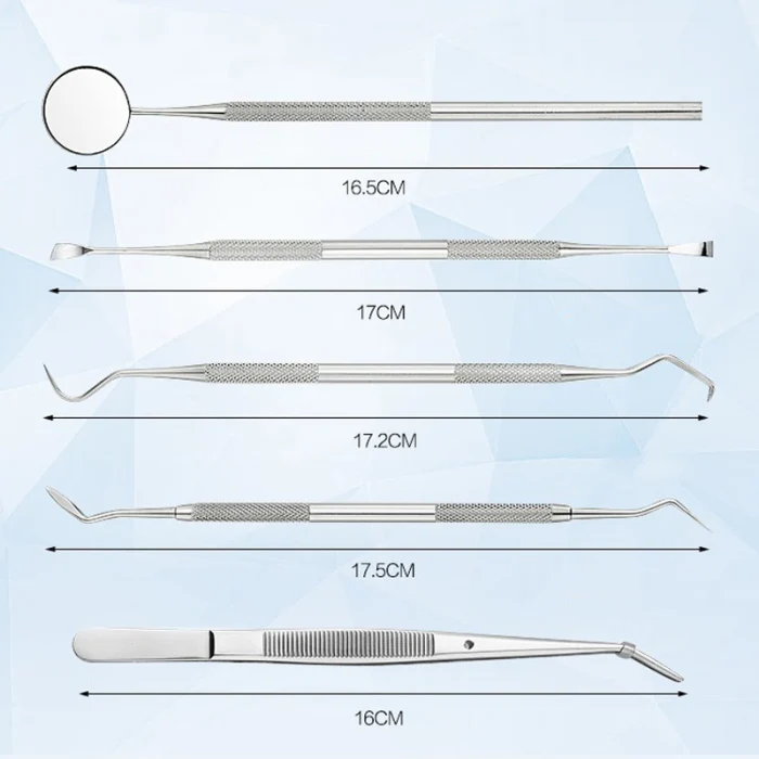 5-в-1 набор инструментов для стоматологии из нержавеющей стали, содержит стоматологический исследователь, зеркало для рта, зубной камень, зубной камень и пинцет.