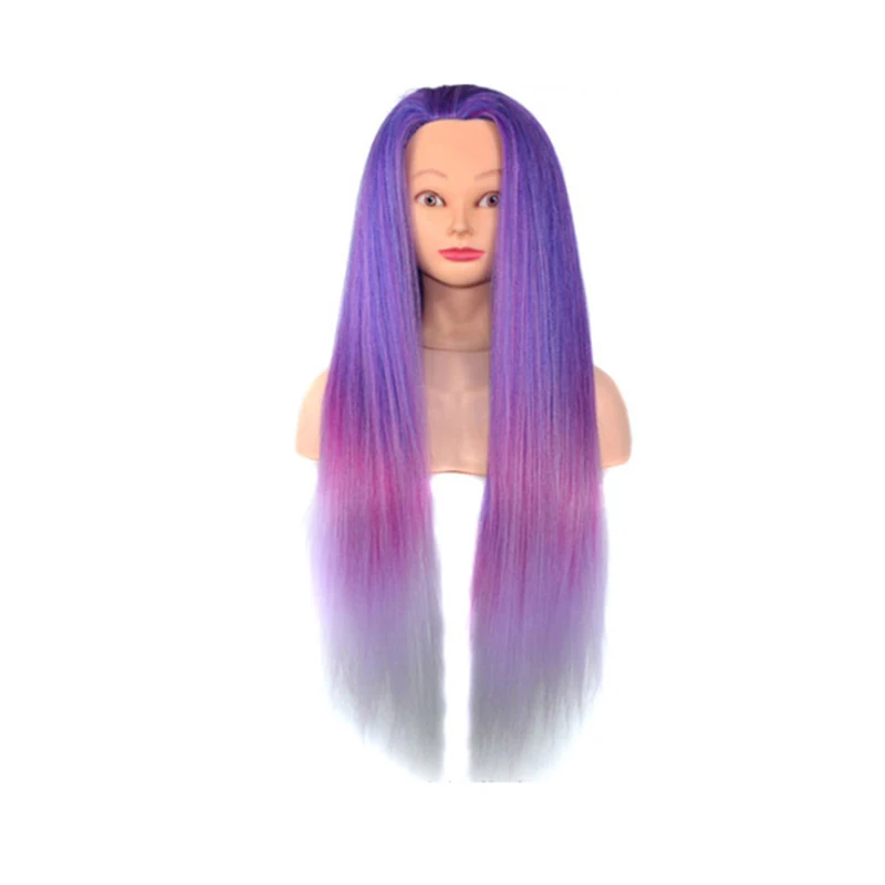 Фиолетовый цвет, длинные волосы, голова манекена для профессиональной укладки волос, профессиональная голова для парикмахерских кукол