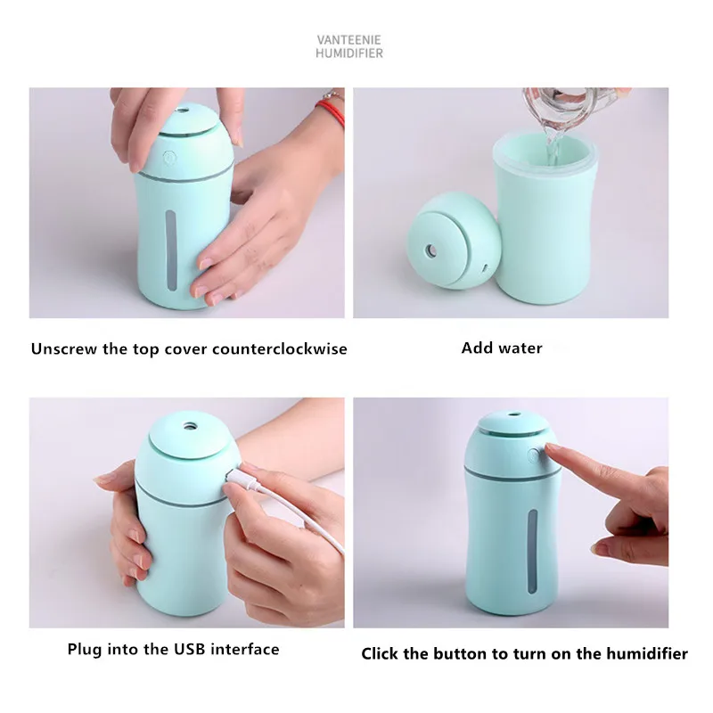 Спецификация: Цвет: белый, синий, розовый Название: увлажнитель воздуха Рабочее напряжение: 5 В постоянного тока Материал: АБС + ПП + силикон Скорость Распыления: 40 мл/ч Рабочий ток: 400 мА Емкость резервуара для воды: 180 мл Время использования: 4-8 ч Источник питания: USB Уровень шума: менее 36 дБ Характеристики: 1. Очень тихий: работает плавно. Не будет беспокоить вас во время сна 2. Большая емкость, сухая защита, инфильтрация и увлажнение 3. Автоматическая защита от отключения питания, анти-сушка 4. Мини-размер, легкий и компактный, легко носить с собой Посылка включает в себя: 1 шт. увлажнитель 1 шт. usb кабель 1 шт. руководство по эксплуатации