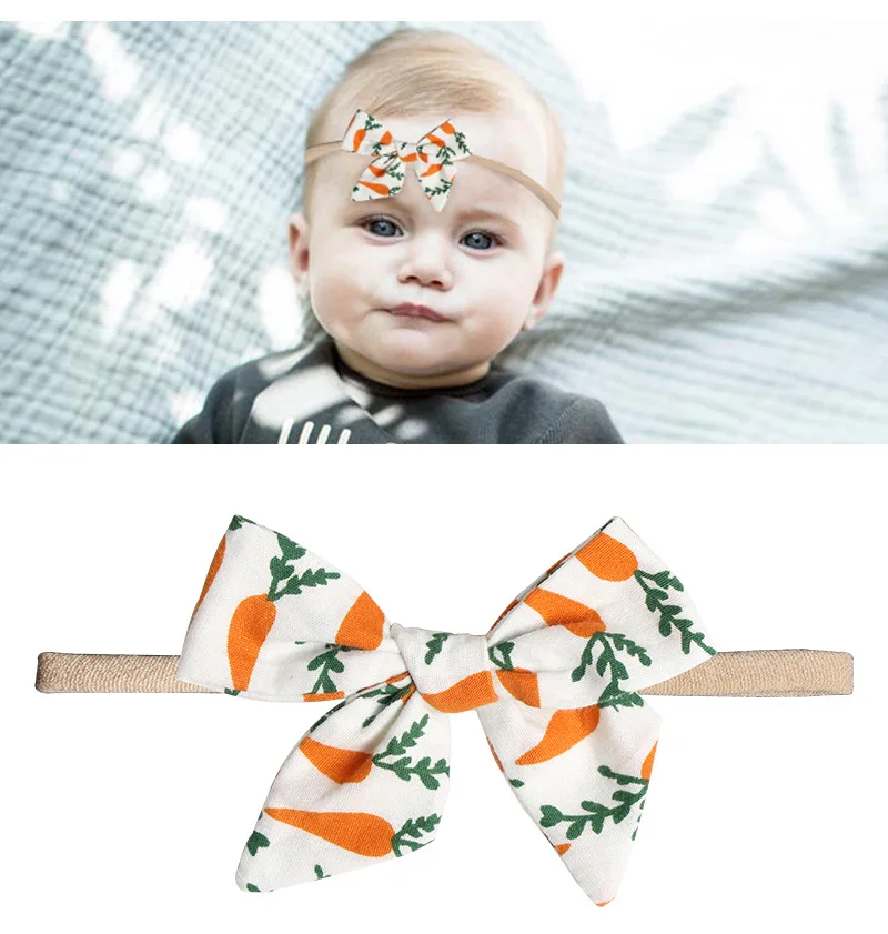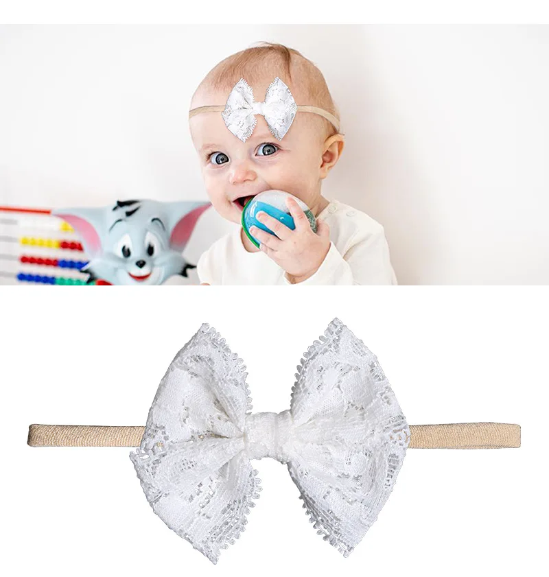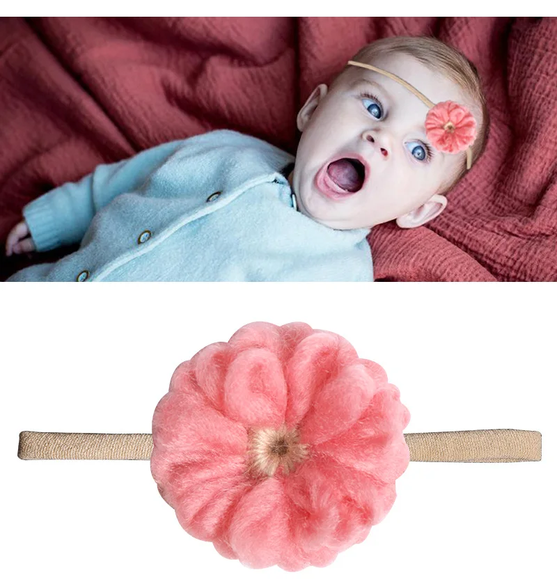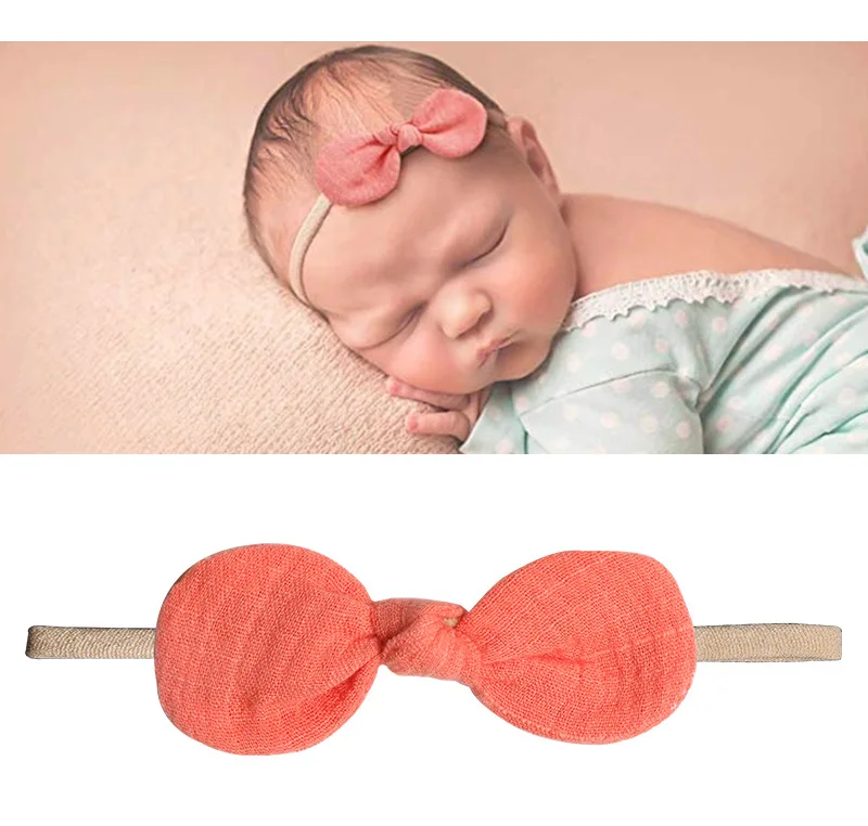 Новая Детская повязка на голову из ткани с цветочным бантом, мягкая нейлоновая эластичная лента для волос, повязка на голову с ручной вязкой, аксессуар для волос для новорожденных