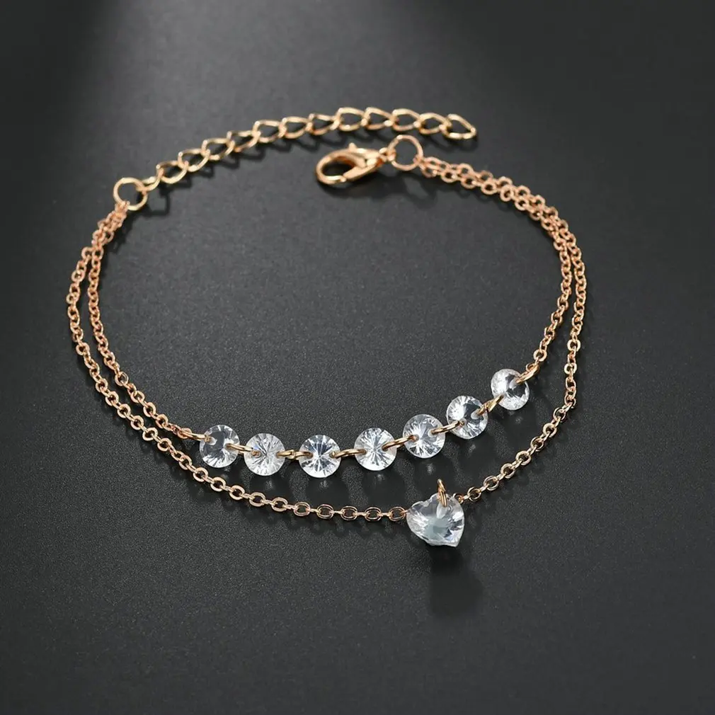 1 * двойной браслет с кристаллом в форме сердца для женщин