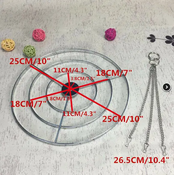 Эти легкие хромированные оправы для люстры настолько функциональны! Идеально подходит для украшения свадьбы или любого события. Светильник очень прост в обращении. Вы можете повесить любые бусины или цветы, которые вам нравятся, чтобы создать свой собственный уникальный канделябр или колонку. Вы можете положить их на вазы, чтобы создать потрясающие люстры, выглядящие по центру. Каждая рамка 3-уровневая. В комплект входят съемные подвесные цепочки. Бусины и бахрома на рисунке не включены. Размер: Внешняя рамка 10 " (25 см) в ширину Цепь 10,4 "в длину Размеры: 25 см x 25 см x 7 см (длина * ширина * высота) Внутренний диаметр отверстия: 1 см/0,39'' Самый маленький диаметр: 3,8 см/1,5 "(без отверстий) Третий диаметр: 11 см/4,33 " (14 отверстий) Второй диаметр: 18 см/7 " (22 отверстия) Первый диаметр: 25 см/9,84 дюйма (30 отверстий) Железная цепь Длина: 26,5 см/10,4" Цвет: хром Материал: металл Посылка: 1 шт.