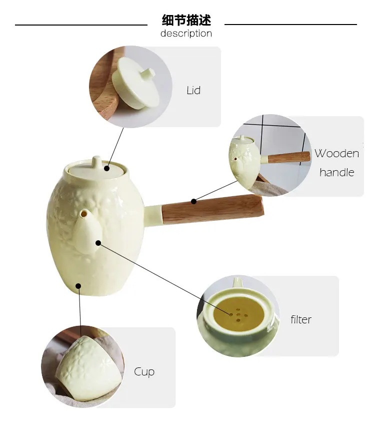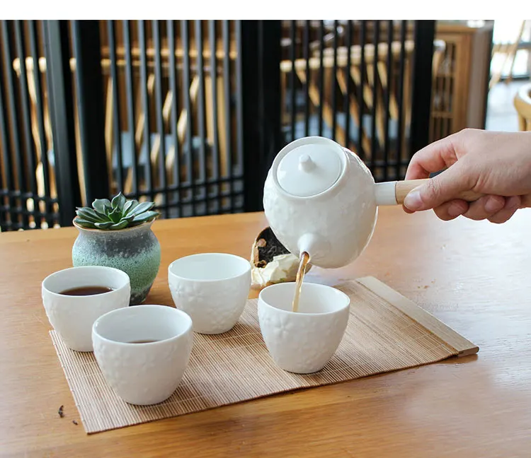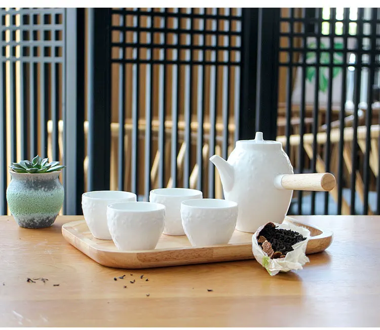 4 чашки и чайник современный стиль выбивает керамический чайник с деревянной ручкой чайник для воды креативный Домашний набор посуды для напитков
