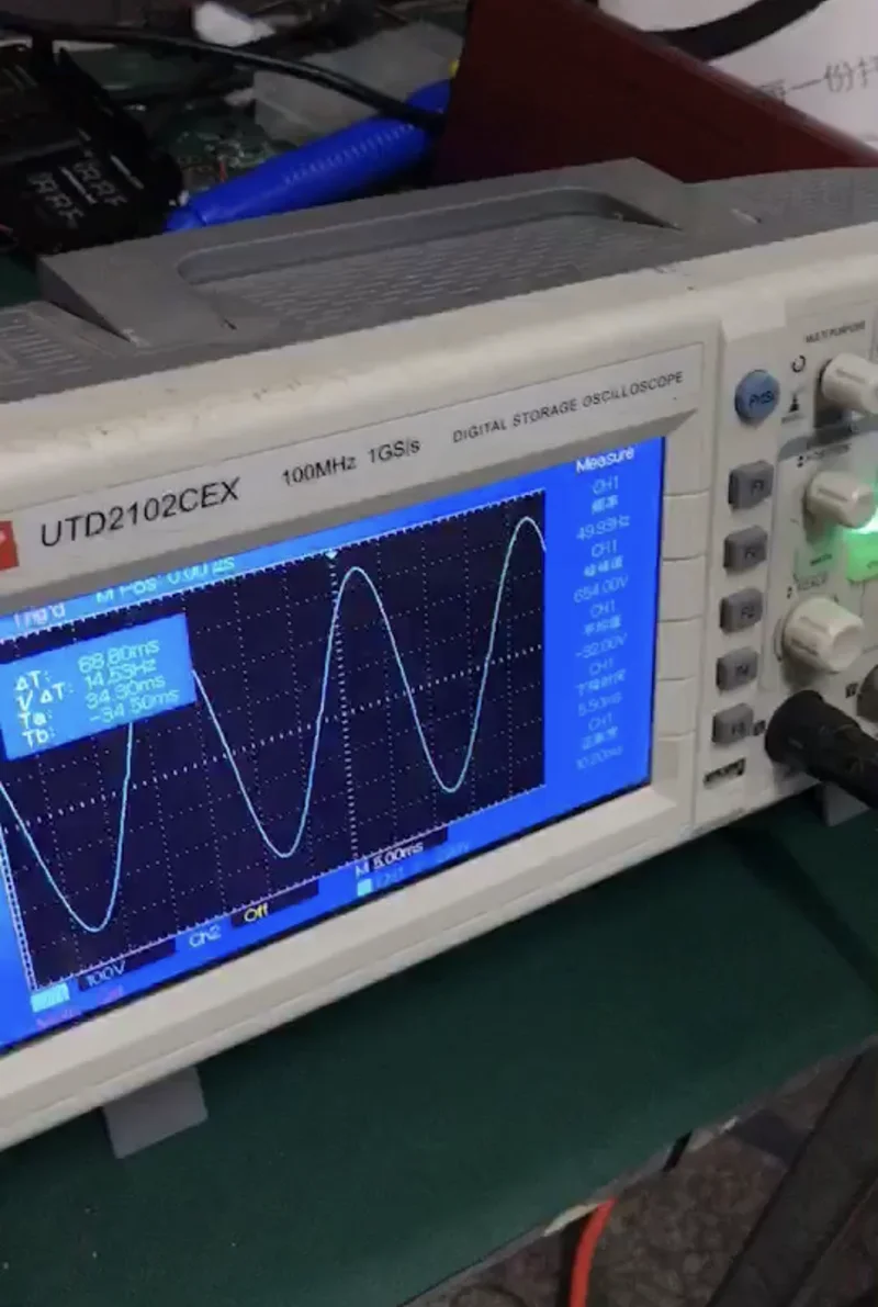 Наш чистый синусоидальный инвертор, показывается тест формы волны.
