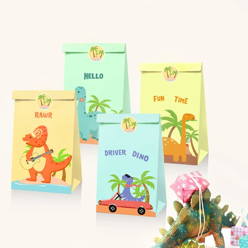 12 шт./лот, вечерние сумки с динозавром, Подарочная коробка для конфет, детские подарочные сумки с животными, вечерние украшения на день рождения, вечерние товары