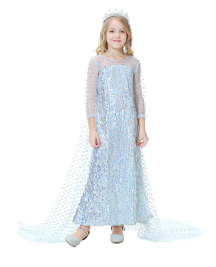 Костюм Снежной Королевы 2, нарядное сказочное платье принцессы Эльзы на Рождество, карнавал, белый костюм Эльзы и Анны для девочек детские Свадебные платья с блестками