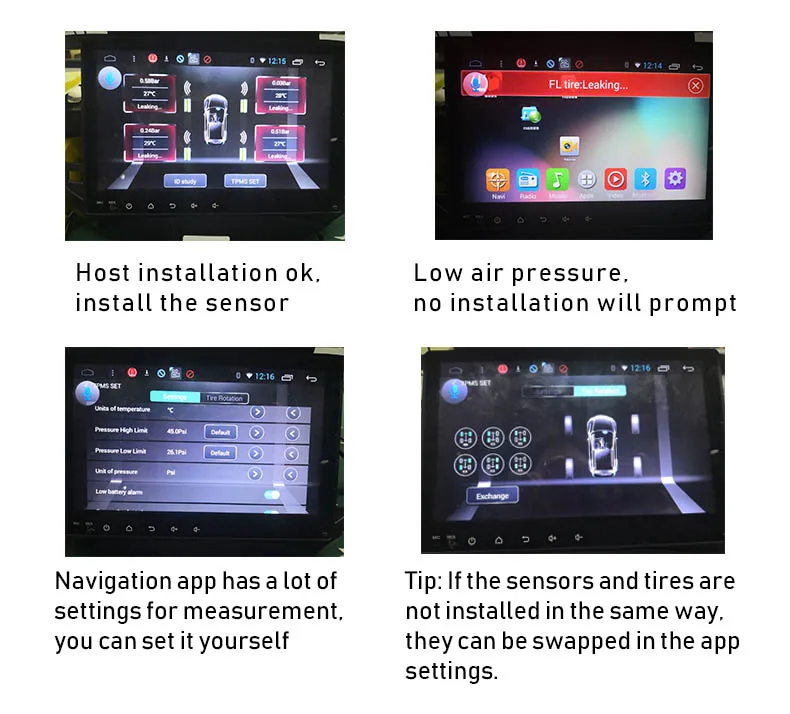 Давление в шинах USB: Вопросы и ответы 1. Установка приложения Каждый комплект оснащен флеш-накопителем USB, а флеш-накопитель USB сохраняет установочный файл APK. Подключите флеш-накопитель USB к навигационной системе для интерфейса USB Android и установите приложение давления в шинах, перейдя в «установщик APK». Примечание: 1) из-за большого количества брендов некоторые виды навигации не обязательно совместимы с программным обеспечением давления в шинах! Поэтому сначала установите приложение TPMS, чтобы проверить, применима ли эта навигация. Переустановите датчик. (Не забудьте сначала установить Встроенный датчик на автобус) 2) сначала Установите файл APK. После запроса завершения установки нажмите «Готово», не нажимайте «открыть». (При установке AIC не подключайте приемник давления в шинах и не подключайте приемник после завершения установки.) 2) Вставьте usb-приемник и подождите 5 секунд. На экране появится изображение. Пожалуйста, проверьте коробку. 3) После проверки настроек откройте приложение. Если интерфейс отображается красным и имеет давление в шинах 0,0 и температурных данных, это будет свидетельствуют о том, что приложения были успешно установлены и давление в шинах устройство соответствует навигация; если данные о температуре показывают два бара (-), это означает, что устройство давления в шинах и навигация временно не соответствуют успешно. Решить непревзойденный метод успеха: А. После подключения и отключения приемника; B. Замена usb навигационного интерфейса; C, перезагрузка навигации (Протестировано для значительного перезапуска навигационного эффекта); D, замените приложение (2 или более файлов APK будут храниться на u-диске) Примечание: Если все вышеуказанные схемы протестированы и все еще не разрешены, это означает, что навигация не совместима с применением давления в шинах, И он не может адаптироваться к продукту давления в шинах USB (эта функция очень редкая), и должен сдаться. 2. После установки приложения в первый раз, это означает, что одно или несколько колес протекают или давление в шинах слишком низкое. Это связано с тем, что навигация на Android не работает, когда датчик установлен, поэтому приемник не получает сигнал, отправленный датчиком вовремя, и данные не обновляются вовремя. Разрешение: 1) запускайте транспортное средство и продолжайте движение со скоростью выше 20 км/ч в течение 3-5 минут. 2) также возможно повторное надувание или отклонение шины. 3. Всплывающее окно приложения является ненормальным Это сигнал датчика потери сигнала. Датчик отправляет данные получателю каждую минуту. Когда приемник не получает соответствующий датчик положения сигнала в течение длительного времени, сигнал потери сигнала будет возникать. Разрешение: 1) Если это происходит, когда транспортное средство только начинается, пожалуйста, держите транспортное средство со скоростью 20 км/ч или выше в течение 3-5 минут. 2) Если это происходит, когда транспортное средство движется нормально, А. Переместите положение приемника, потому что приемник находится близко к помехам, и сигнал получает помехи. B. Остановка и повторное сопряжение вручную. 4. Модель сенсорного аккумулятора Внешний аккумулятор используется около 1 года. Когда батарея используется, ее можно изменить. CR1632 номер модели и емкость 120 мАч. Встроенный аккумулятор используется около 3 лет, вст