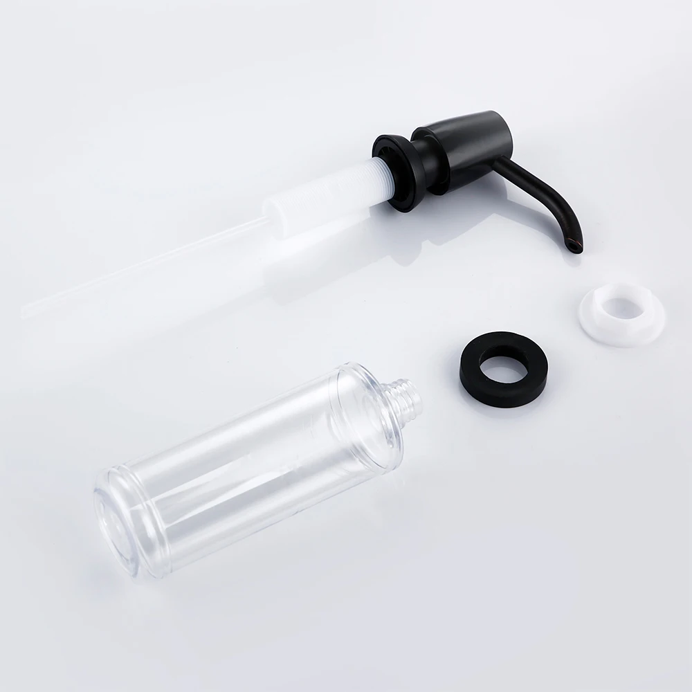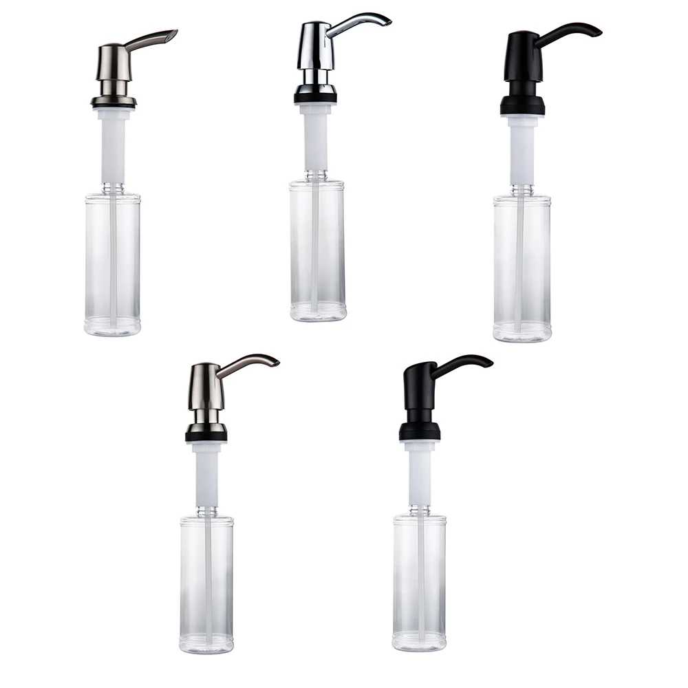 Apply to all kinds of liquid soap for hand Face Hair Bath Dishware Etc. This modern sink soap dispenser matches a wide variety of premier faucet styles. This soap dispenser is with humanized design Say goodbye to crawl under the sink to fill the soap Just fill soap liquid or hand washing liquid from top into soap dispenser.