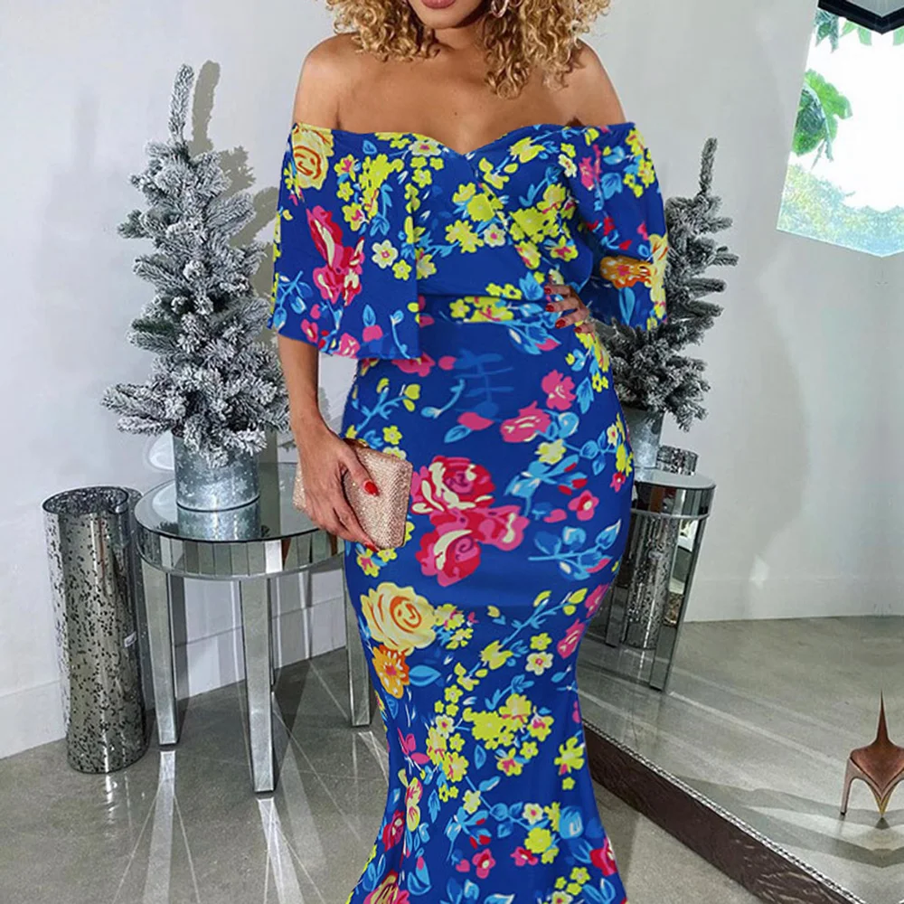 Летнее женское Сетчатое Кружевное облегающее платье в африканском стиле, сексуальное вечернее платье с вырезом лодочкой, вечернее платье с высокой талией и оборками Falbala