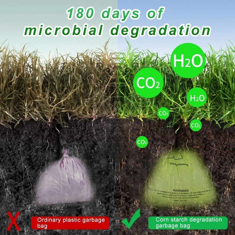Первый мешок Epi Разлагаемый мешок для мусора Размеры: 23*33 см Толщина: 0,015 мм 15 пакетов в рулоне Материал: epi + pei Время разложения: 1-2 года после отбрасывания Подержанная пакет Кукурузный крахмал биоразлагаемый мешок Размеры: 23*33 см Толщина: 0,015 мм 15 пакетов в рулоне Материал: кукурузный крахмал Время разложения: 90 дней после отбрасывания
