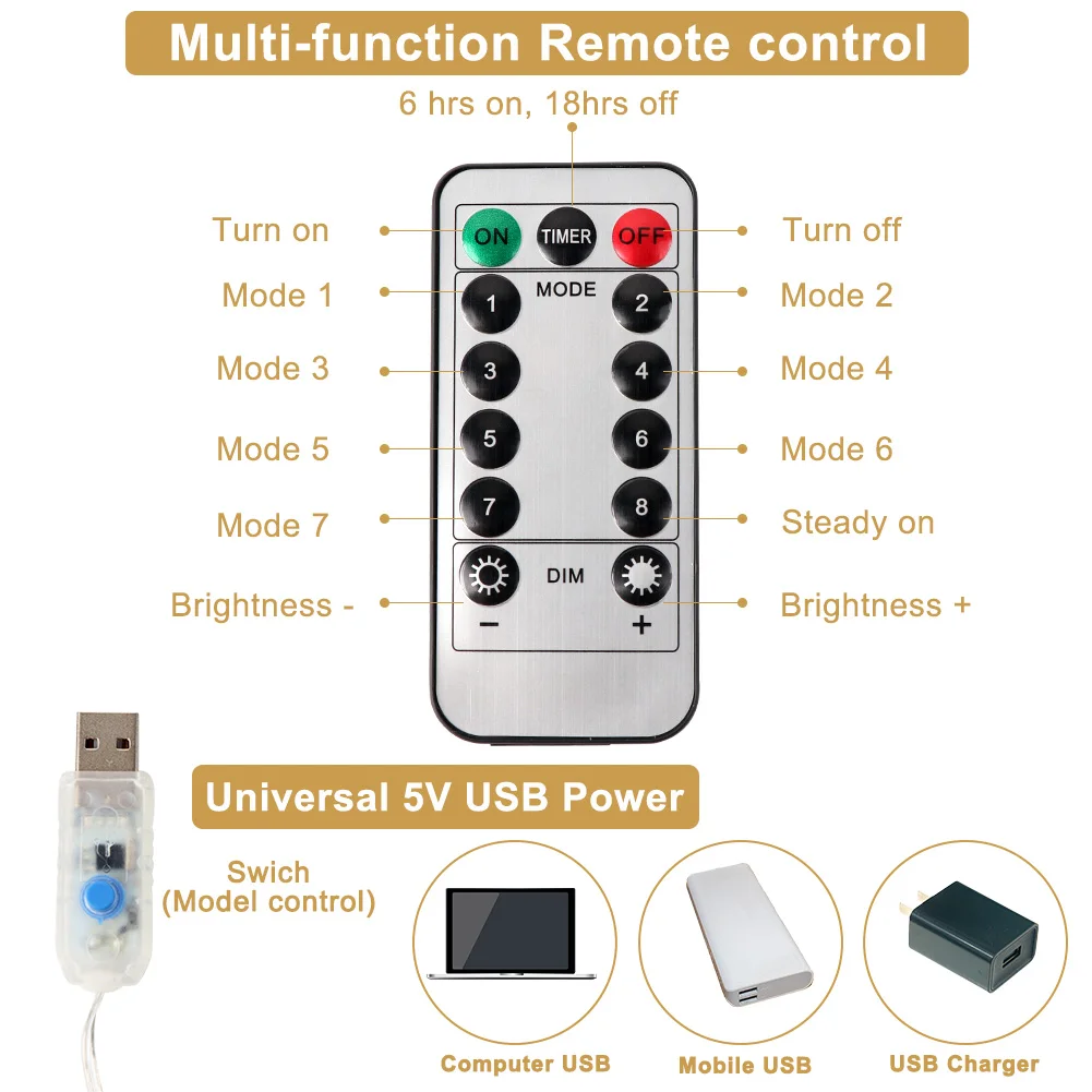 -Легко повесить на стены, окна, двери, потолки, рождественские деревья и идеально подходит для свадьбы, фестиваля, шоу, вечеринок и так далее. (Зарядное устройство USB включено!) Если вы не полностью удовлетворены своей покупкой, пожалуйста, не стесняйтесь связаться с нами, мы предоставляем 100% возврат денег и гарантию на один год. Пожалуйста, наслаждайтесь этой абсолютно безрисковой покупкой прямо сейчас!