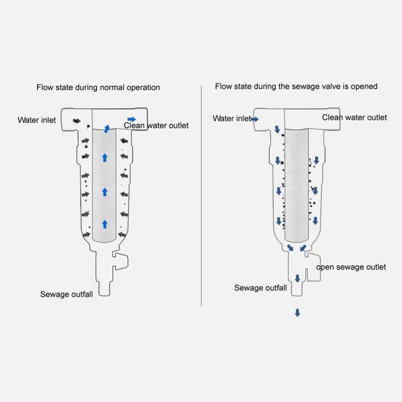 2. Сброс сточных вод: сброс сточных вод должен осуществляться в тех случаях, когда определенное количество грязи скапливается в нижней части корпуса фильтра. Поместите утварь, такую как пластик