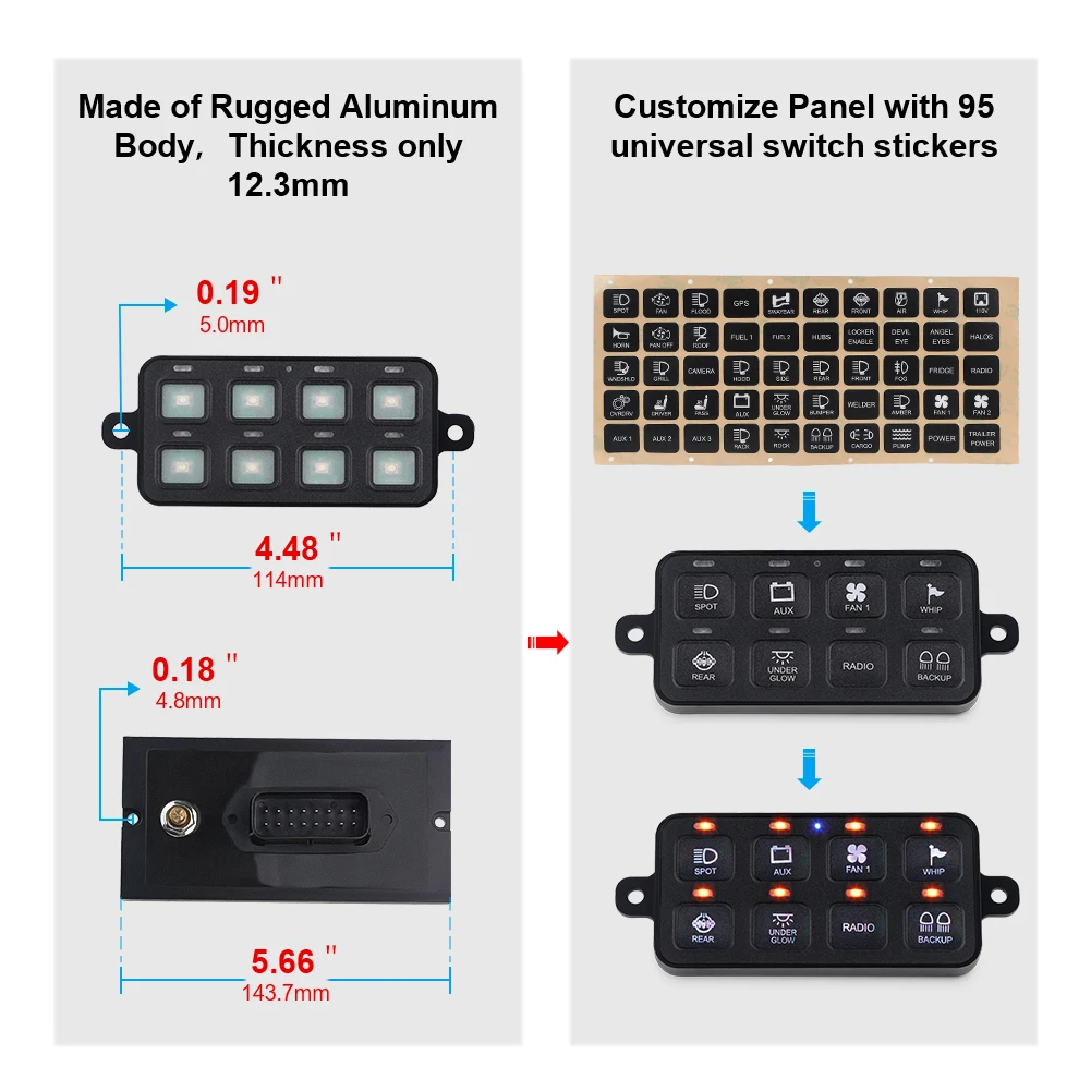 2. Несколько переключателей объединены для управления одной нагрузкой: если подключенный ток нагрузки слишком большой (один переключатель 120 Вт = 12 В * 10 А), когда один переключатель не перемещает одну нагрузку, вы можете использовать комбинацию нескольких переключателей для управления одной нагрузкой. Например, нагрузка 30A, вы можете использовать комбинацию из трех переключателей для управления нагрузкой. Система управления переключателем Полностью программируется. 8 выключателей могут быть установлены как вкл/выкл, двойная вспышка или мгновенный.