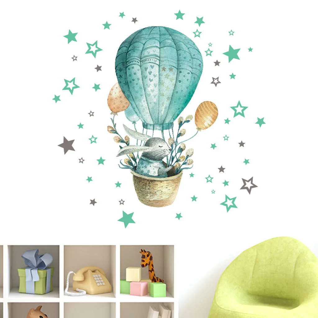 Hot Air Balloon Rabbit PVC Sticker Wall Sticker Wallpaper Living Room Decoration